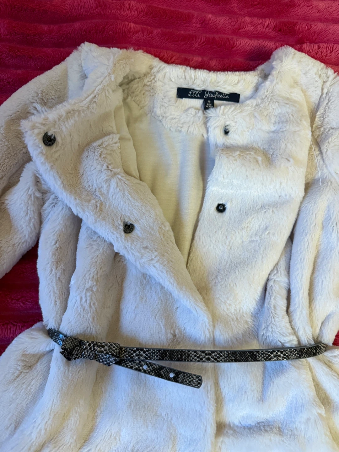 New never worn girls fluffy jacket Size 8 years Selling for $45 Full price was $120