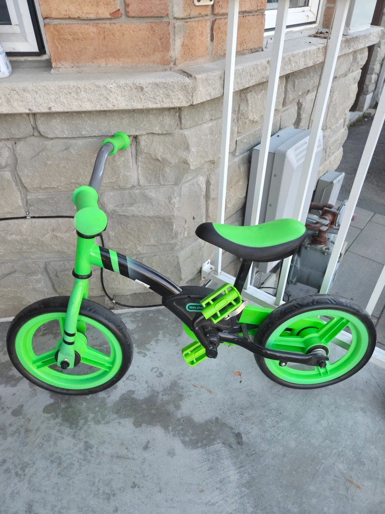 This Little Tikes balance bike is in great shape and ready for a new rider! It's a fun way for kids to learn balance and coordination before moving on to a pedal bike. The bright green colour is sure to be a hit!