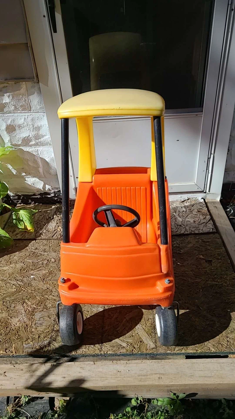 Selling a Little Tikes Cozy Coupe car! It's in great shape and ready for a new little driver. This classic ride-on toy is perfect for toddlers and provides hours of fun and imaginative play. The bright orange and yellow colours are sure to catch your child's eye
