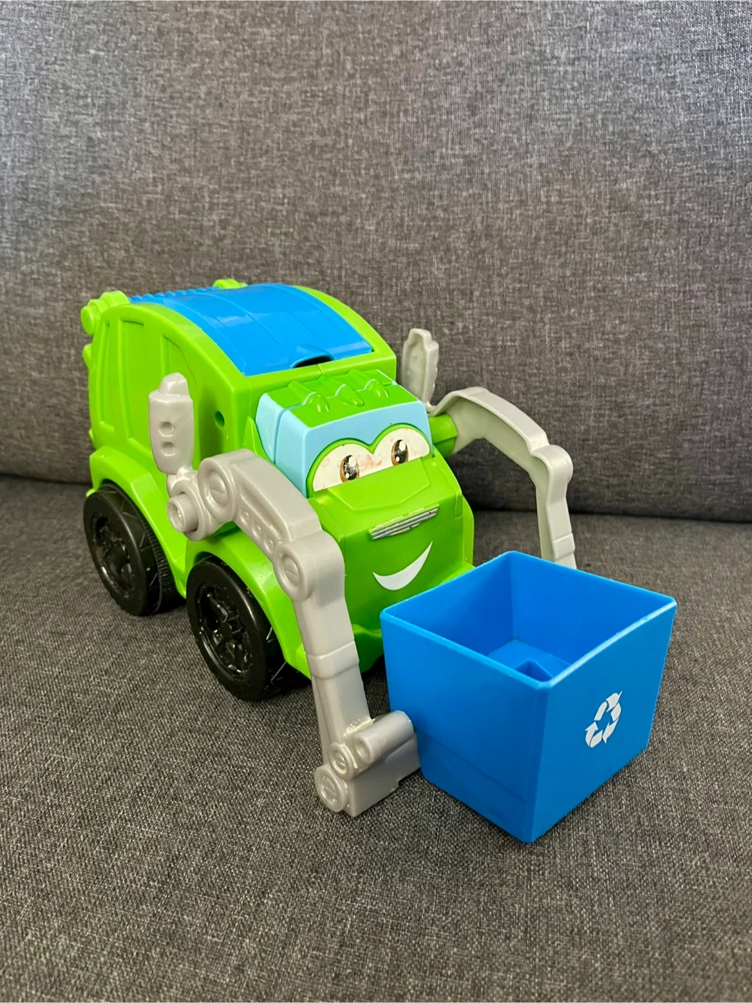 Selling a Little Tikes recycling truck! It's in great shape and ready for a new home. This toy truck is perfect for little ones who love vehicles and recycling. It's green and blue, with a cute smiley face on the front. Hours of fun for your little one