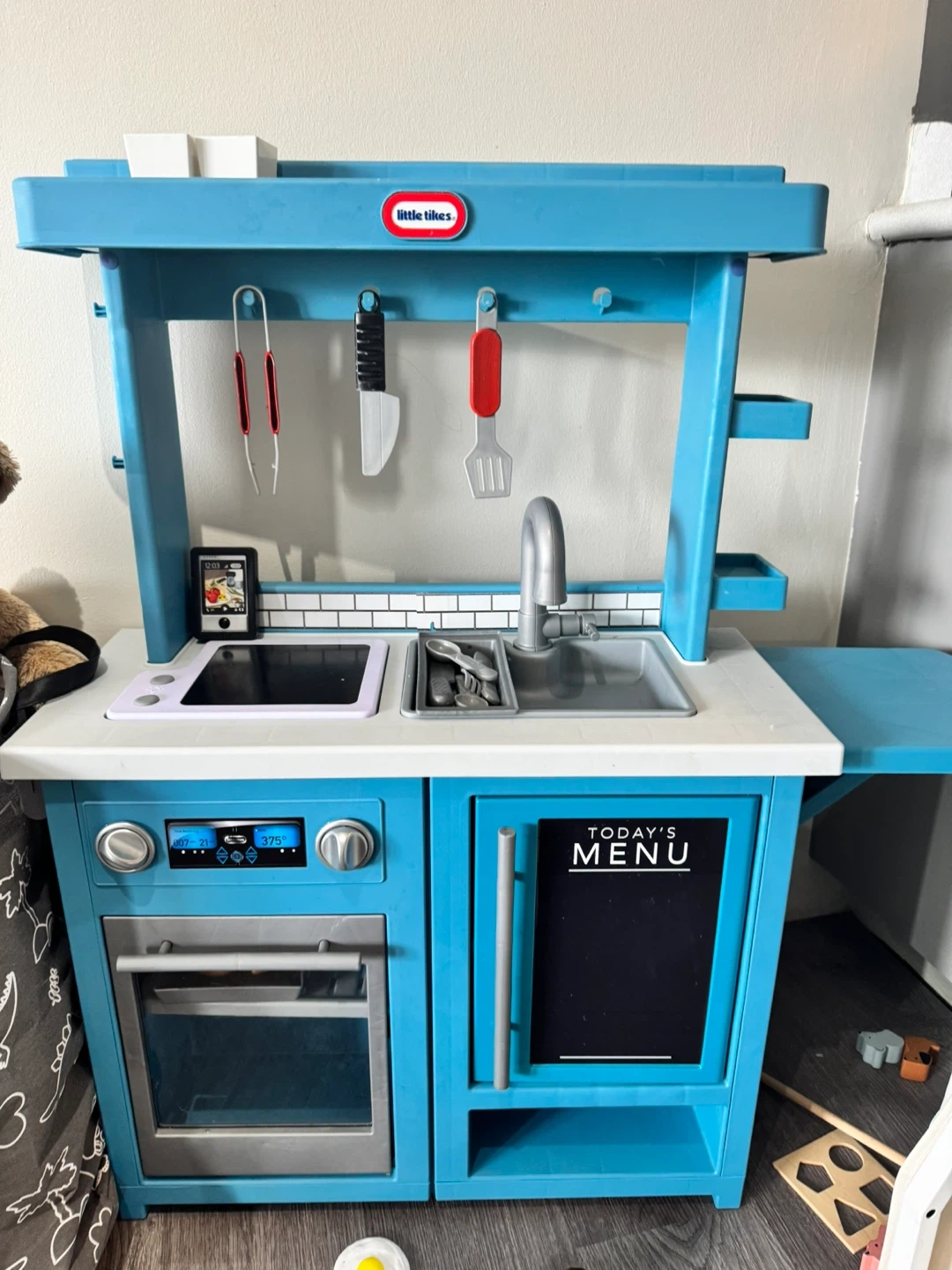 Selling a Little Tikes kitchen playset. It's in great shape and ready for a new little chef! Includes a sink, stove, oven, and some utensils for cooking up imaginary meals. Perfect for hours of fun and creative play!