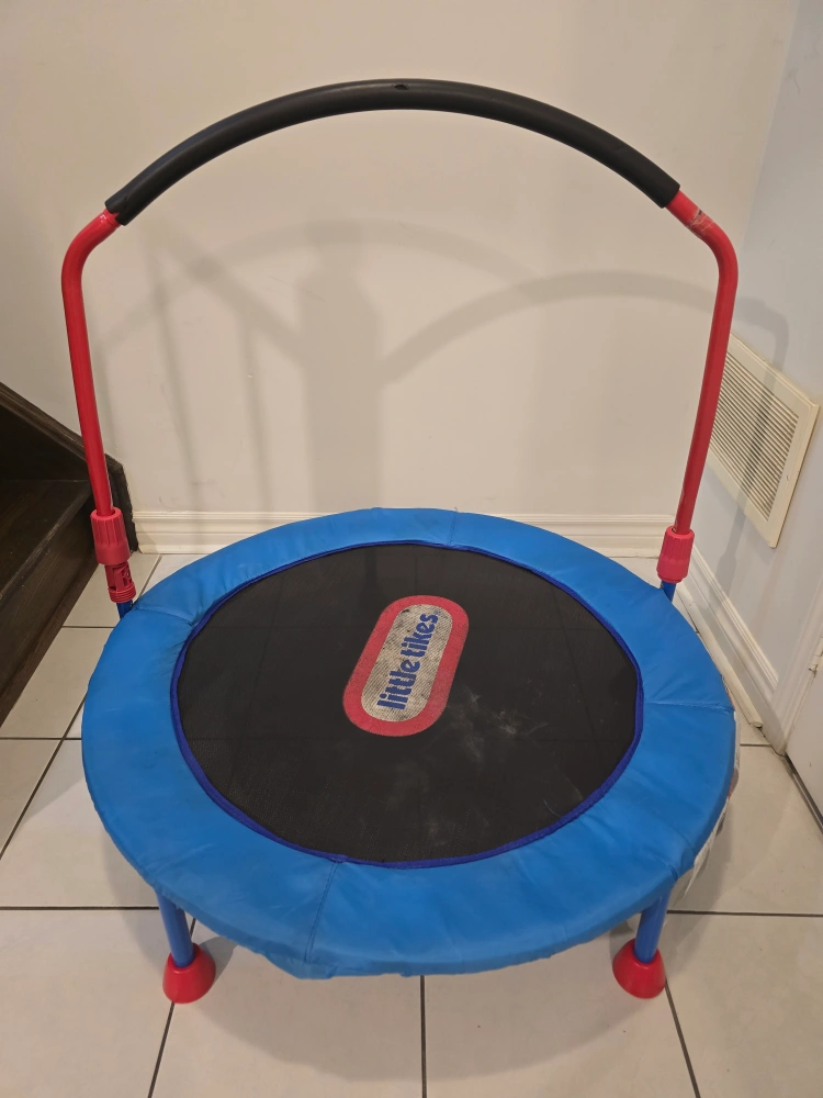 Get your little one bouncing with this Little Tikes trampoline! It's perfect for toddlers and helps them develop their coordination and balance. The trampoline features a handlebar for added stability and a safe, enclosed jumping surface. It's in great condition and ready for a new home!