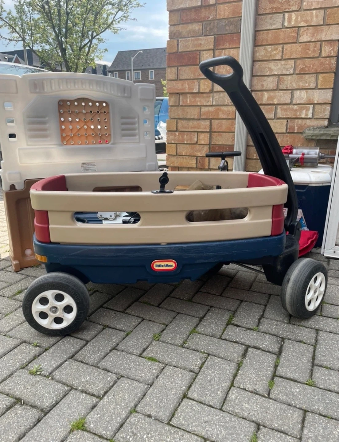 Selling a Little Tikes wagon! It's in good condition and ready for some fun adventures. Perfect for hauling toys or giving little ones a ride around the neighbourhood