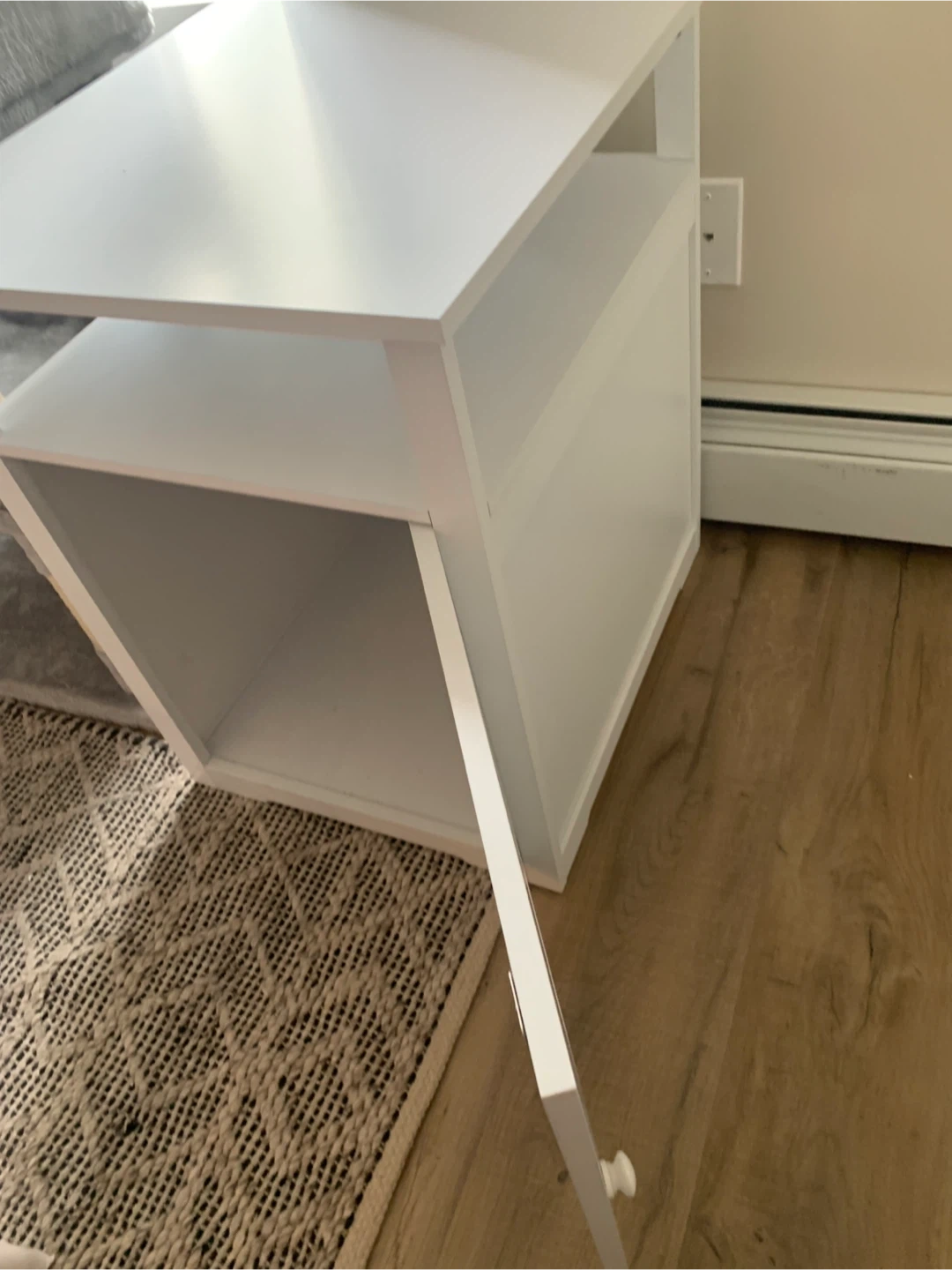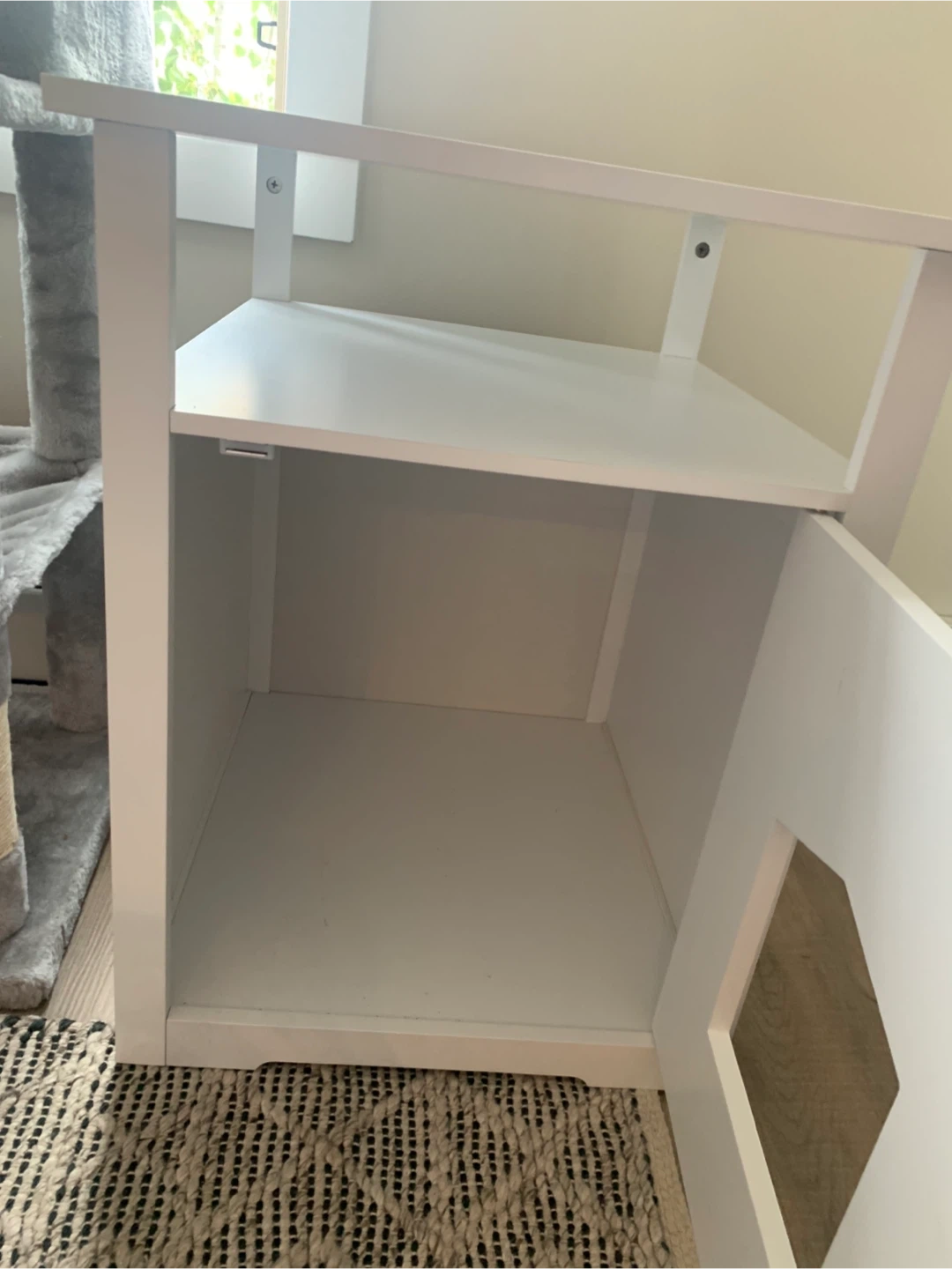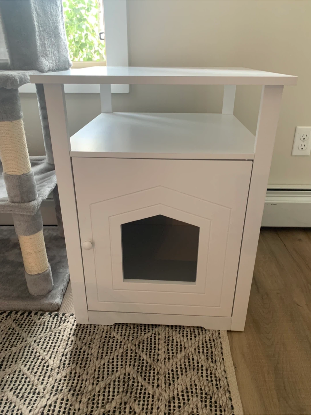Selling a LIVINGbasics cat litter box furniture piece in white! It's in great condition, never used and provides a discreet and stylish way to hide your cat's litter box. It can also double as a nightstand. Originally bought for $89.99!