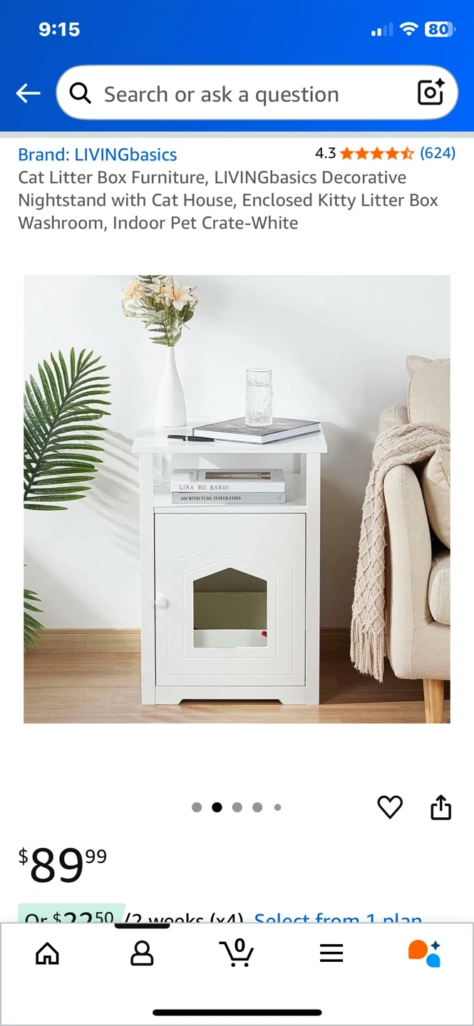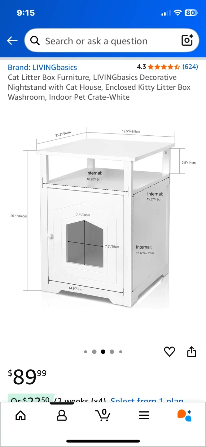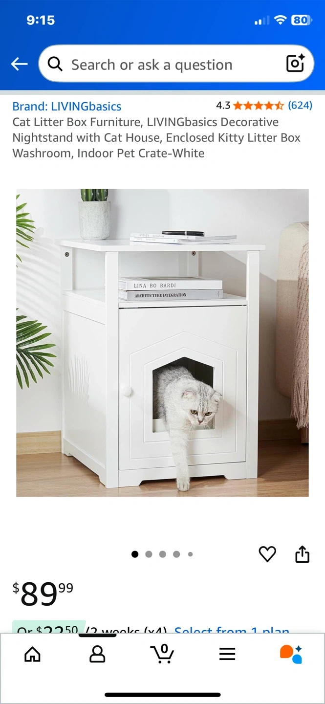 Selling a LIVINGbasics cat litter box furniture piece in white! It's in great condition, never used and provides a discreet and stylish way to hide your cat's litter box. It can also double as a nightstand. Originally bought for $89.99!
