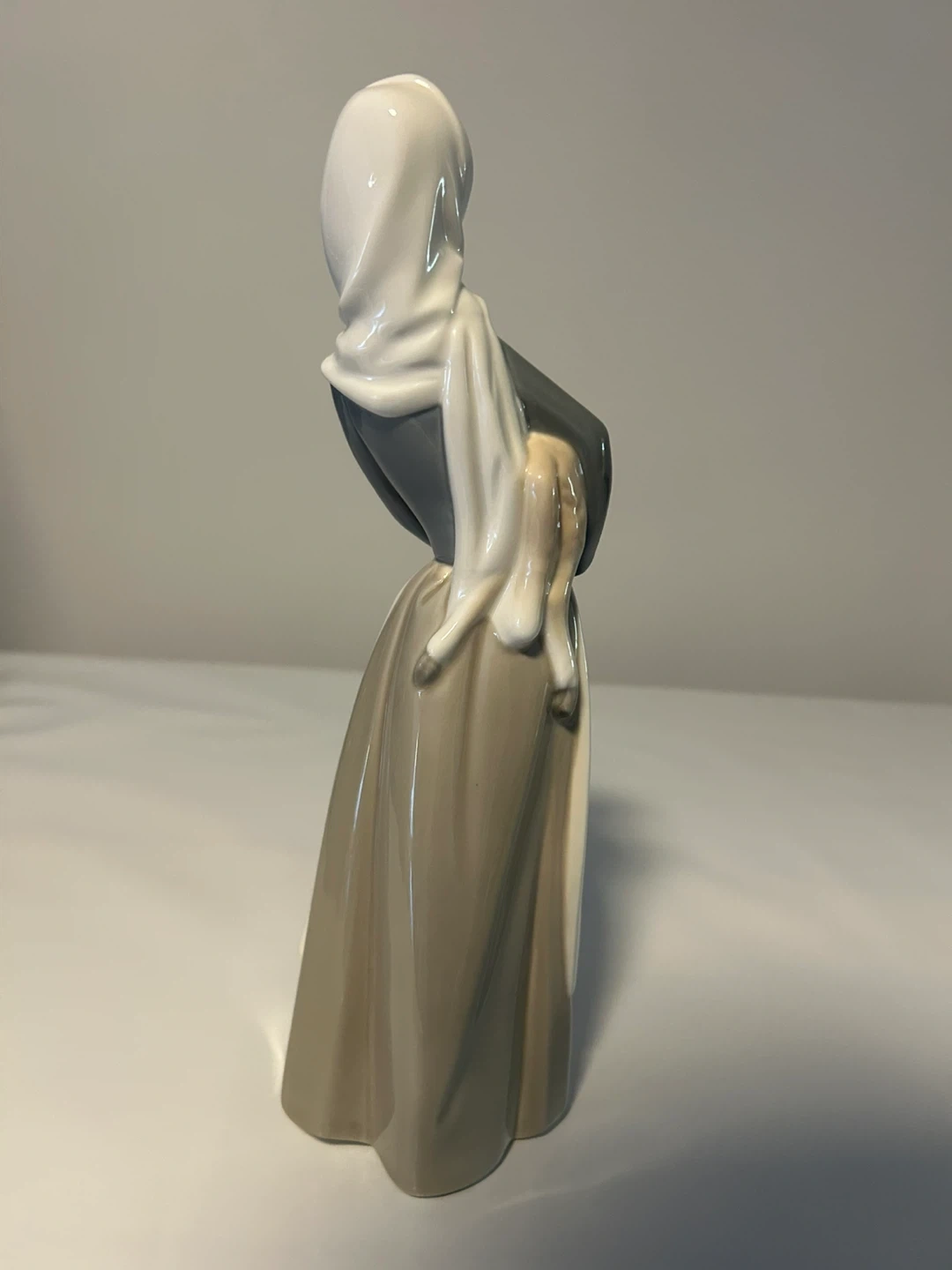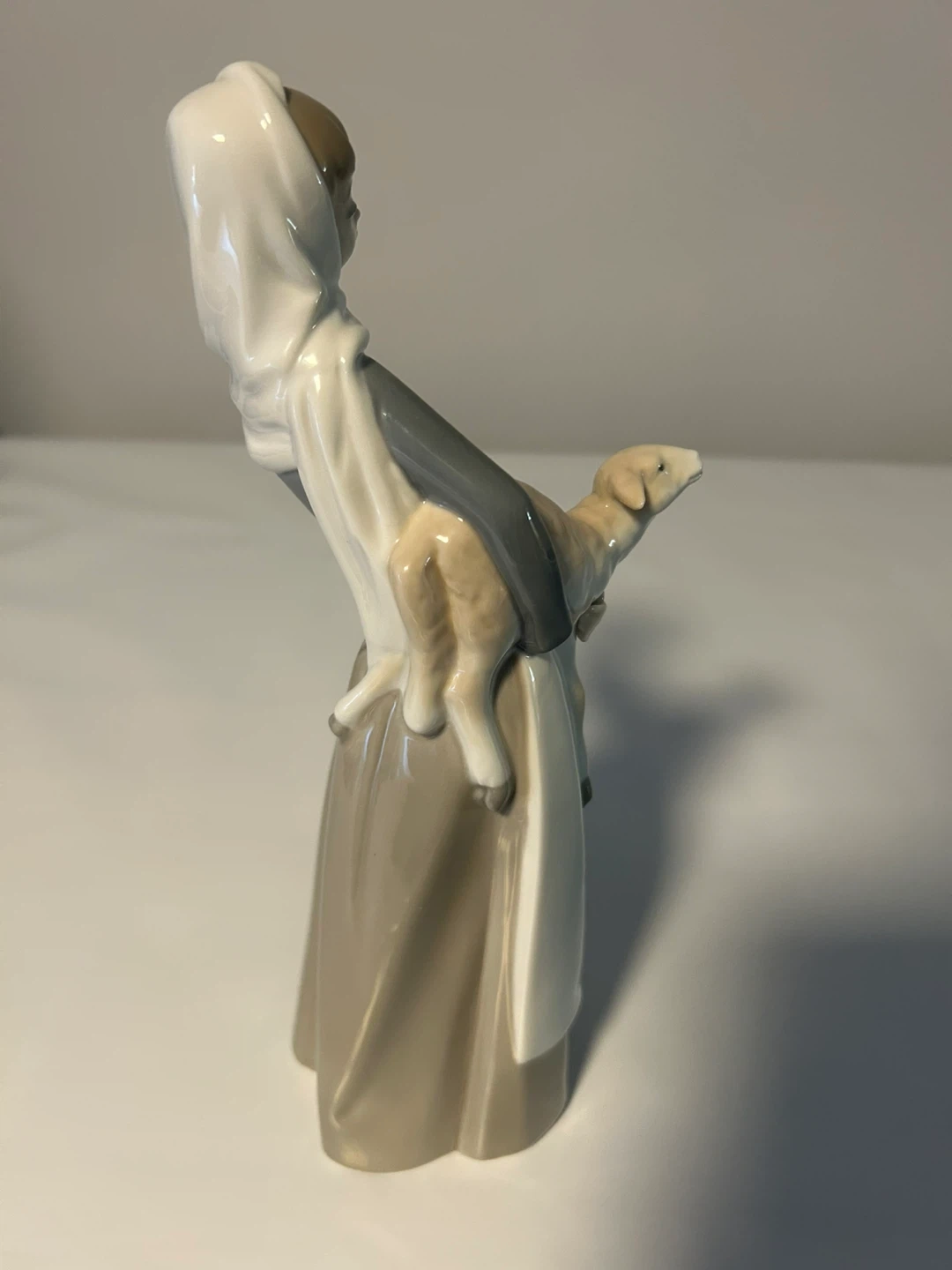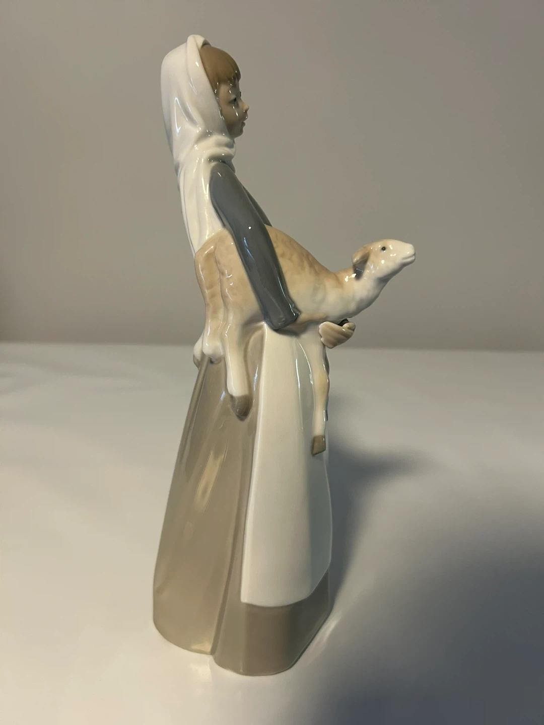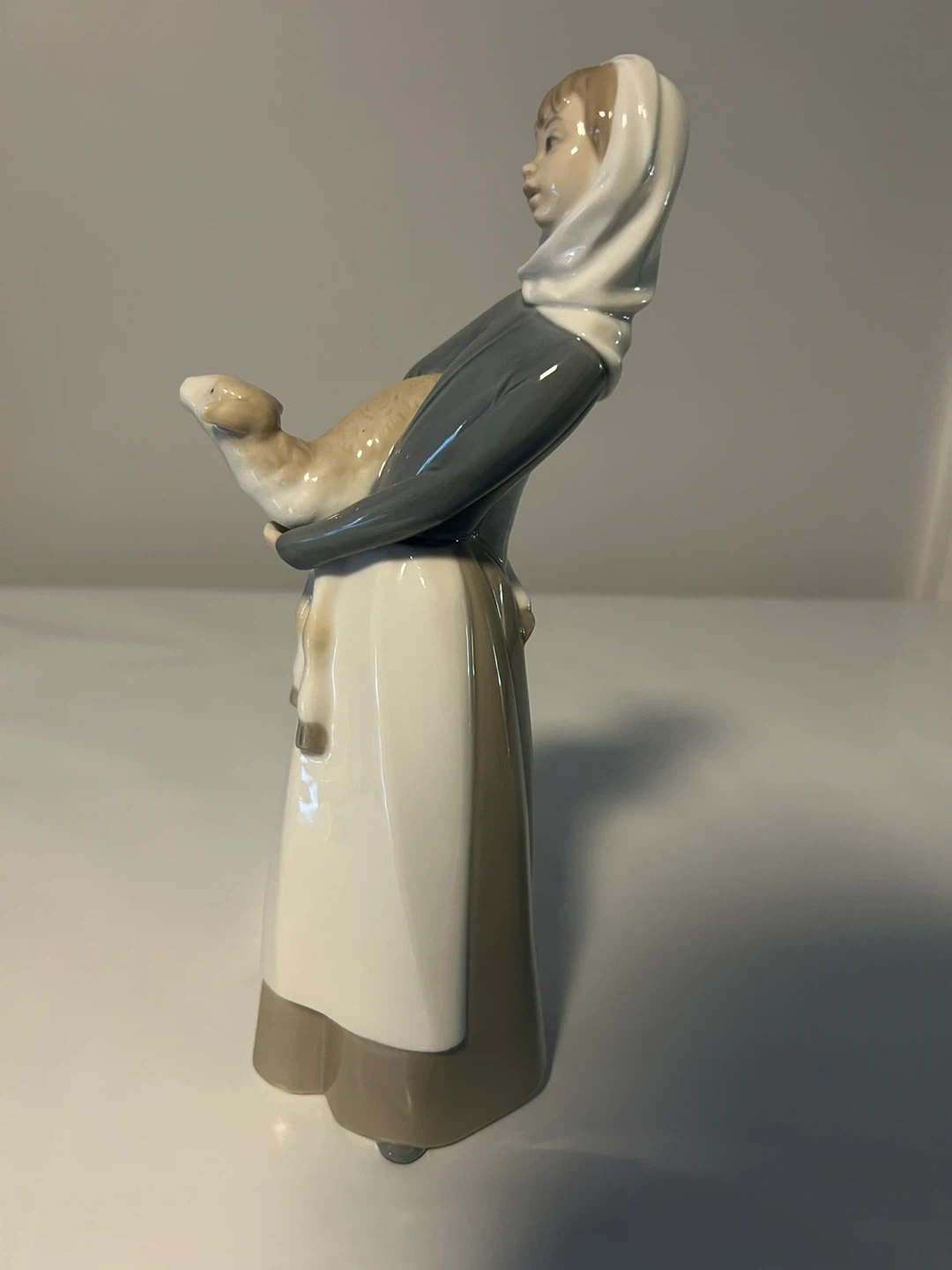 This is a beautiful Lladro figurine of a girl holding a lamb. It's in great condition and would make a lovely addition to any collection