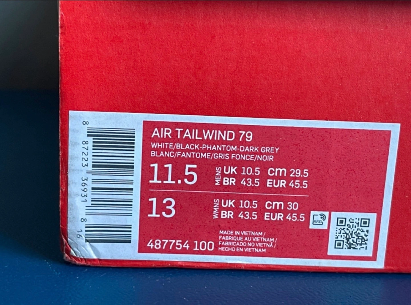 AIR TAILWIND 79 WHITE/BLACK-PHANTOM-DARK GREY BLANC/FANTOME/GRISFONCE/NOIR 11.5. Only wear once, reason for selling the shoe is big for my leg