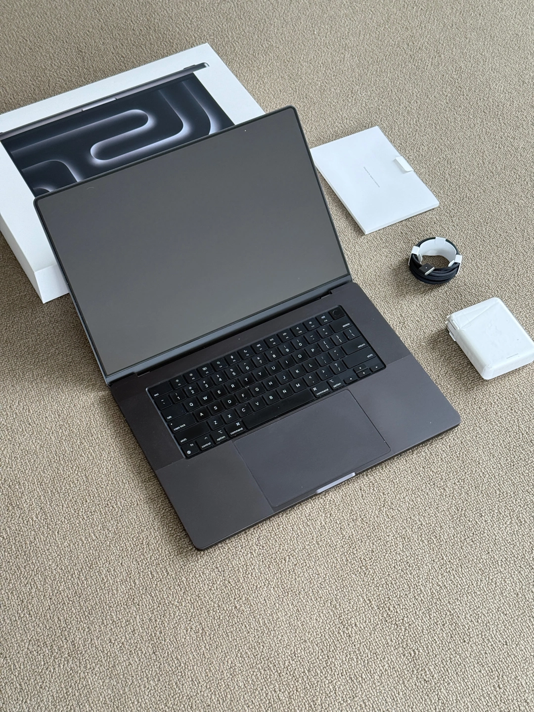 Open to trade for less powerful MacBook Pro M3 or M4 pro + cash. Loaded MacBook Pro 16"! Worth over $8,700 for it. Original receipt to prove. M3 Max Chip 128GB RAM / Memory 4TB Harddrive Body skin to protect case Screen protector Works like a dream, super fast! One of the fastest laptops available. Pickup downtown Vancouver near BC Place, easy free parking. Local deal only. Possible trade for Mac Studio + cash --------- MacBook Pro, MacBook, MacBook m3 max, MacBook laptop, apple laptop, apple computer, MBP, MBP 16"