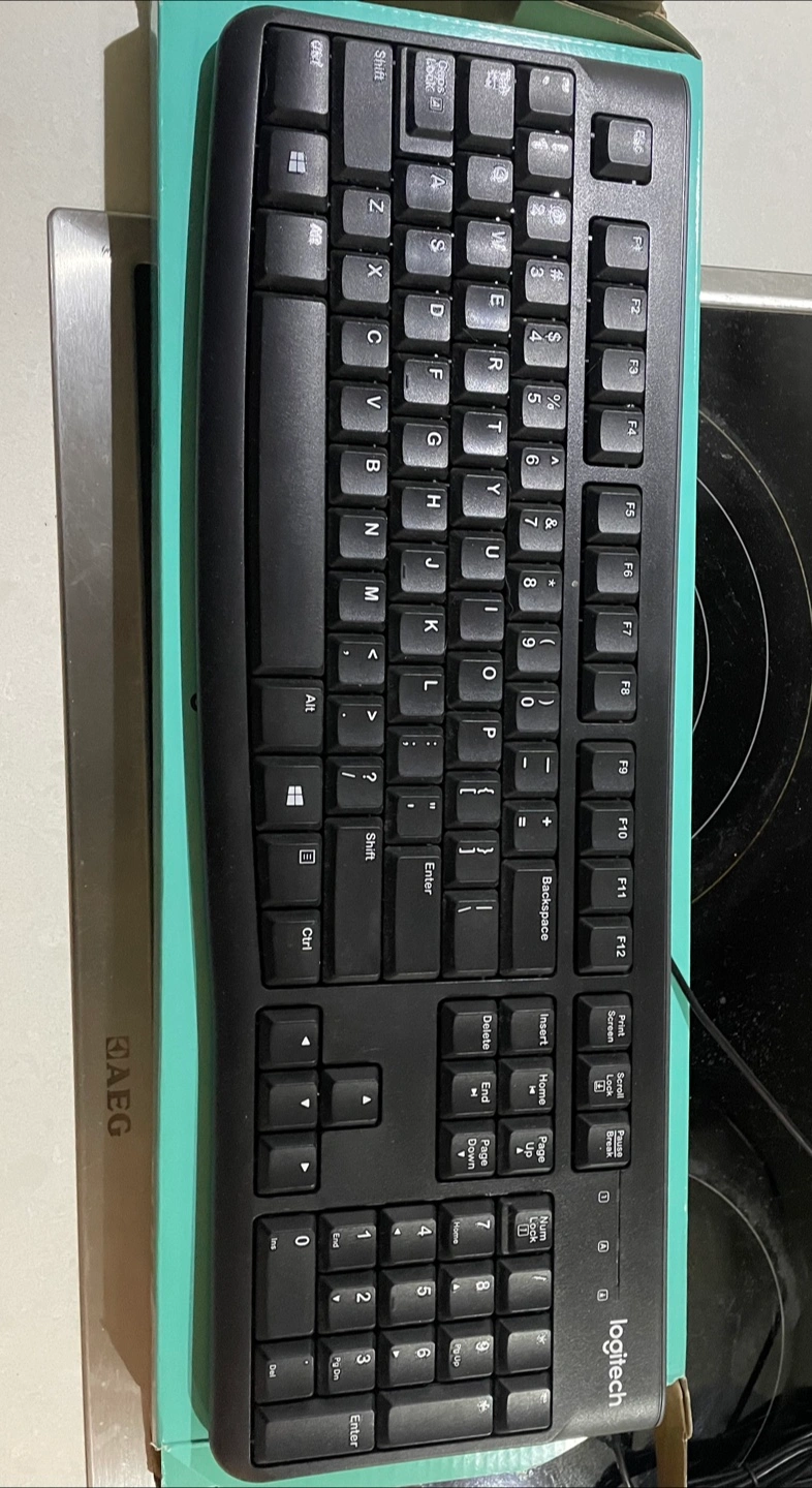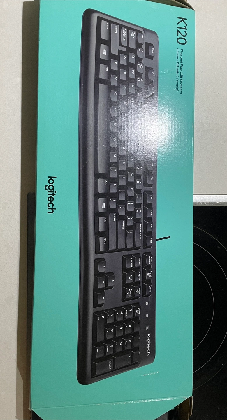 Wired keyboard, USB connection, black colour. Box is opened and torn at edges from being under other boxes in closet but keyboard is new and never used.