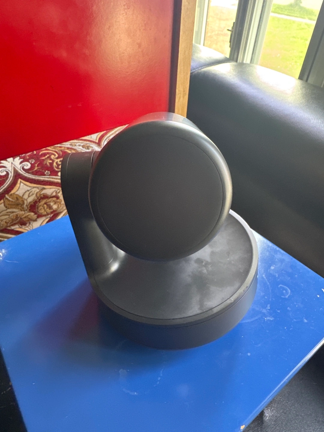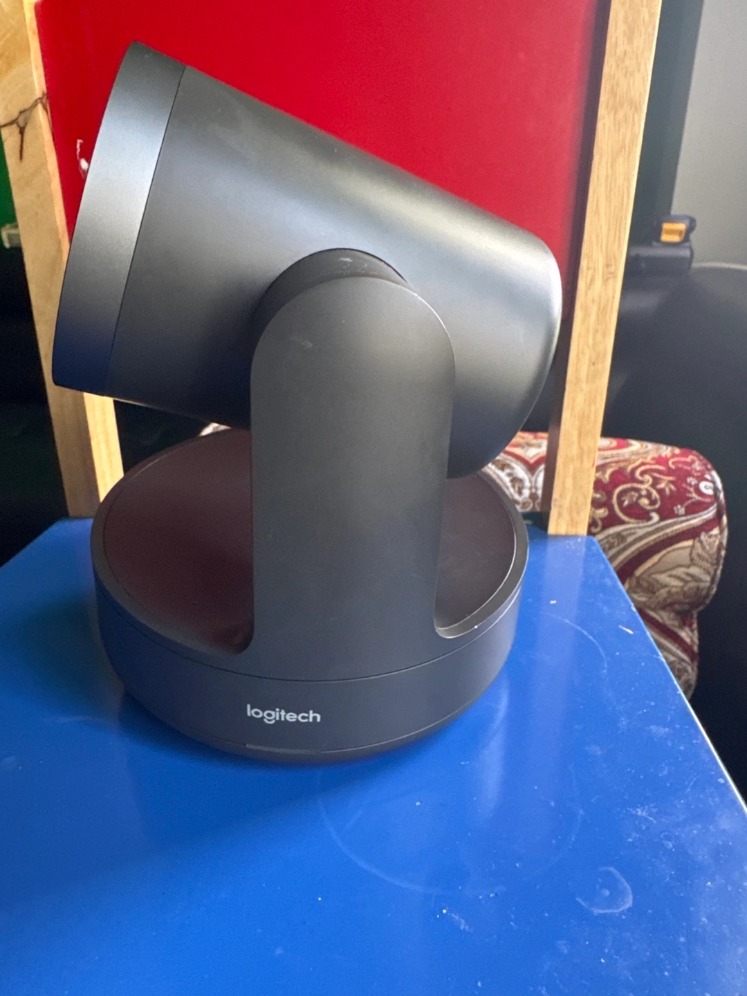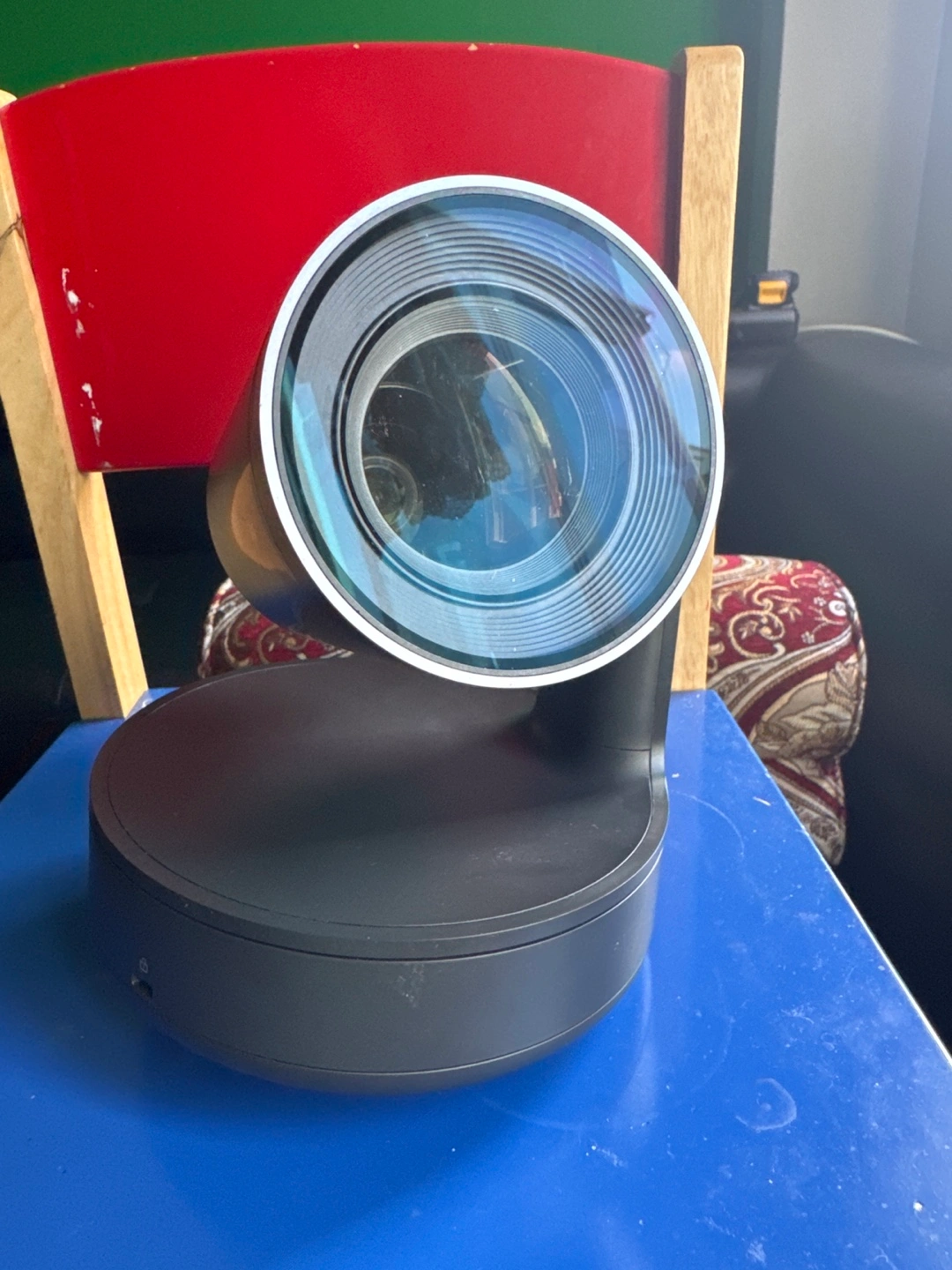 A camera. It appears to be in good condition. Perfect for connecting with friends and family from afar, or for use in the office for conferences.