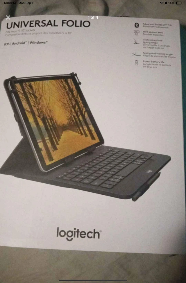 I'm selling a Logitech Universal Folio tablet keyboard case, designed to fit most 9-10 inch tablets, and is compatible with iOS, Android, and Windows. PLEASE CHECK ONLINE IF COMPATIBLE. I WILL NOT REFUND. This keyboard features advanced Bluetooth 3.0, well-spaced keys, optimal typing and viewing angles, and a 2-year battery life. This item is in like-new condition and comes with the original box and packaging. Key features: * Fits most 9-10" tablets * Compatible with iOS, Android, Windows * Advanced Bluetooth 3.0 * Well-spaced keys * Locks at optimal typing angle * Optimal viewing angle * 2-year battery life Looking at similar listings on Kijiji, I've priced this keyboard at $35, which is a great deal for a like-new accessory! If you see this ad, yes, it is still available. Pick up only.