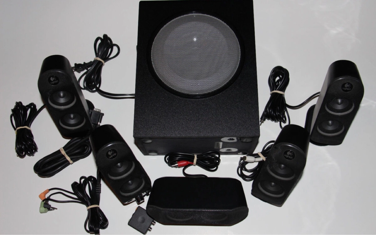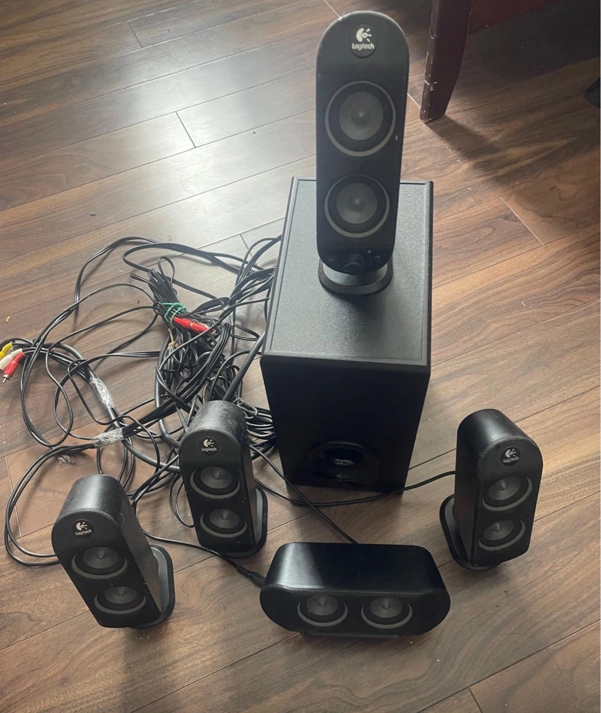 Logitech speaker subwoofer surround sound system with all speakers in working as new.
