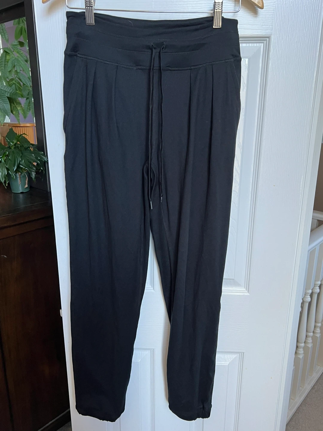 Selling a pair of Lolë jogger pants in black. They are a size small and in great condition. Perfect for workouts or just lounging around the house. They have a drawstring waist for a comfortable fit