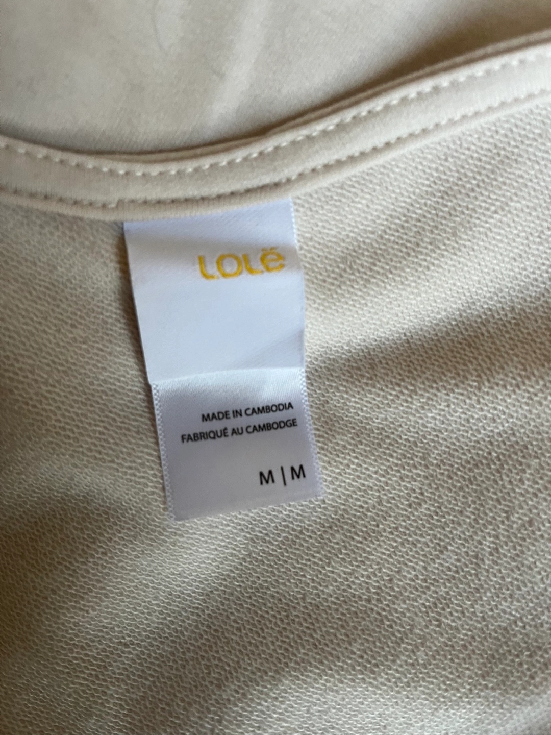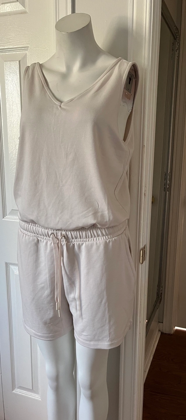 A cute Lolë romper in a neutral beige colour! It's a size medium and perfect for lounging around or running errands. In great condition and ready for a new home!