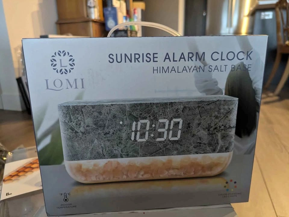 Sunrise alarm clock with a Himalayan salt base.