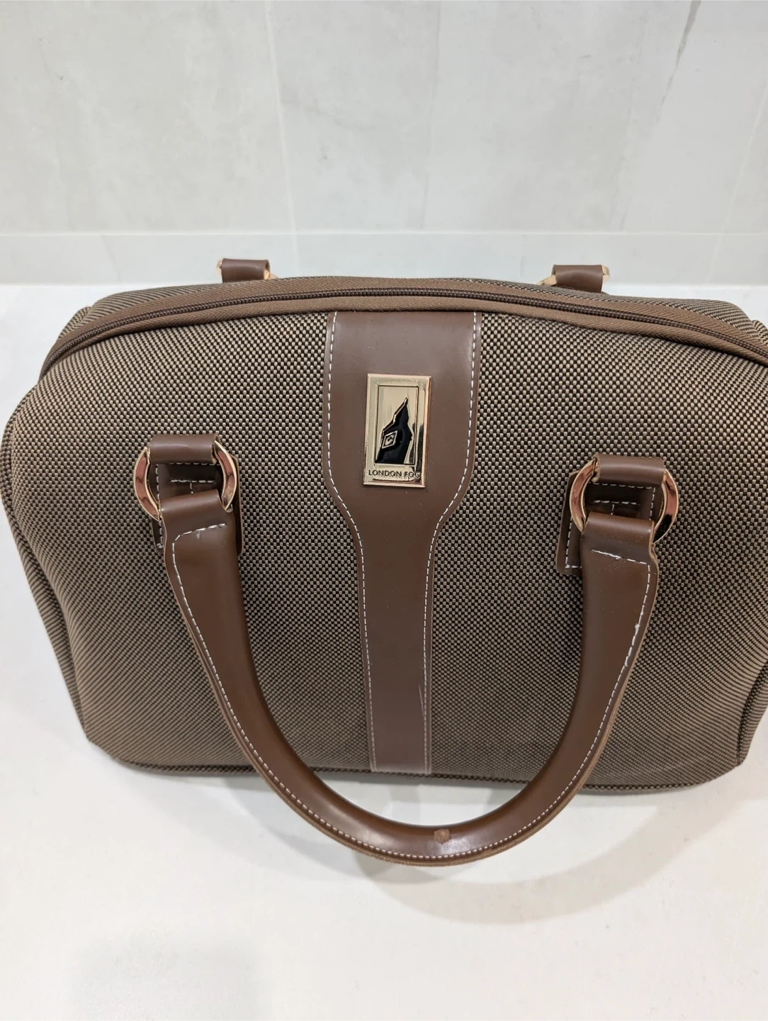 Here's a lovely London Fog duffle bag in a neutral brown colour. It's in great shape and ready for your next trip to the cottage or weekend getaway!