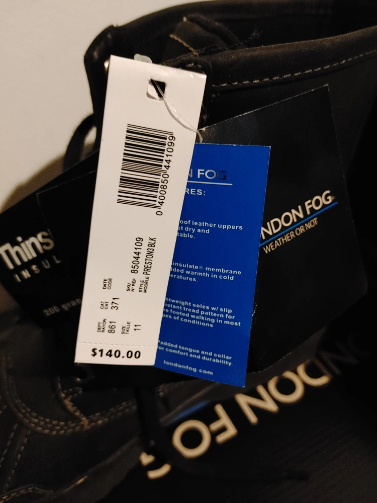 🥕LONDON FOG GENUINE LEATHER WINTER BOOTS 🥕BRAND NEW WITH ALL TAGS 🥕MENS SIZE 11 🥕200 GRAMS THINSULATE INSULATION 🥕$140 RETAIL 🥕I AM LOCATED IN THE YONGE AND STEELES AREA FOR PICKUP ONLY. THANKS😊😊😊