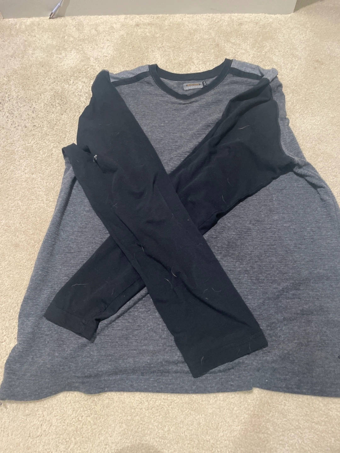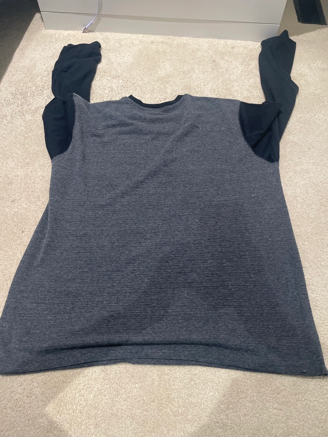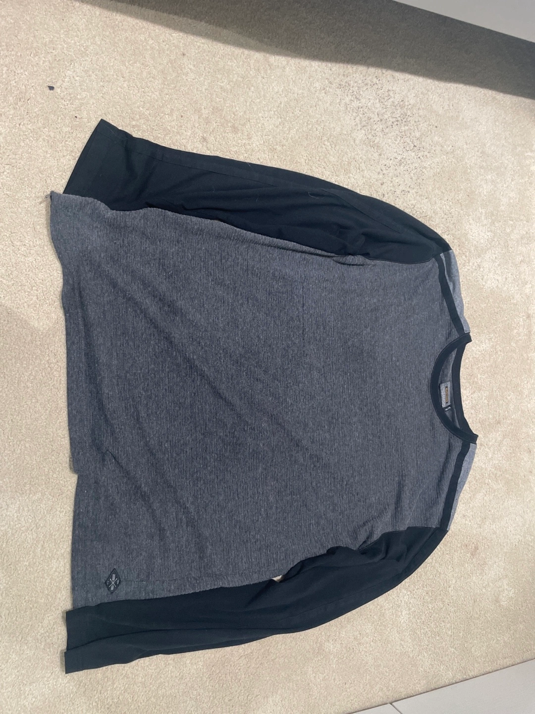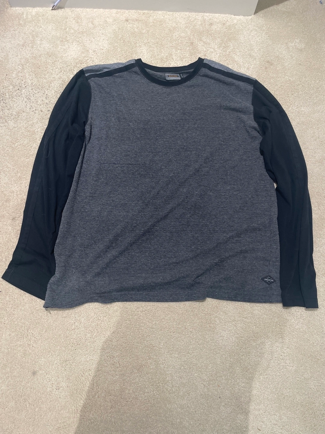 Grey long sleeve with black sleeves, easy to wear on a warm or cold day and is waiting to find a new home! XXL