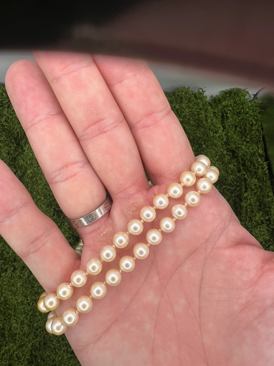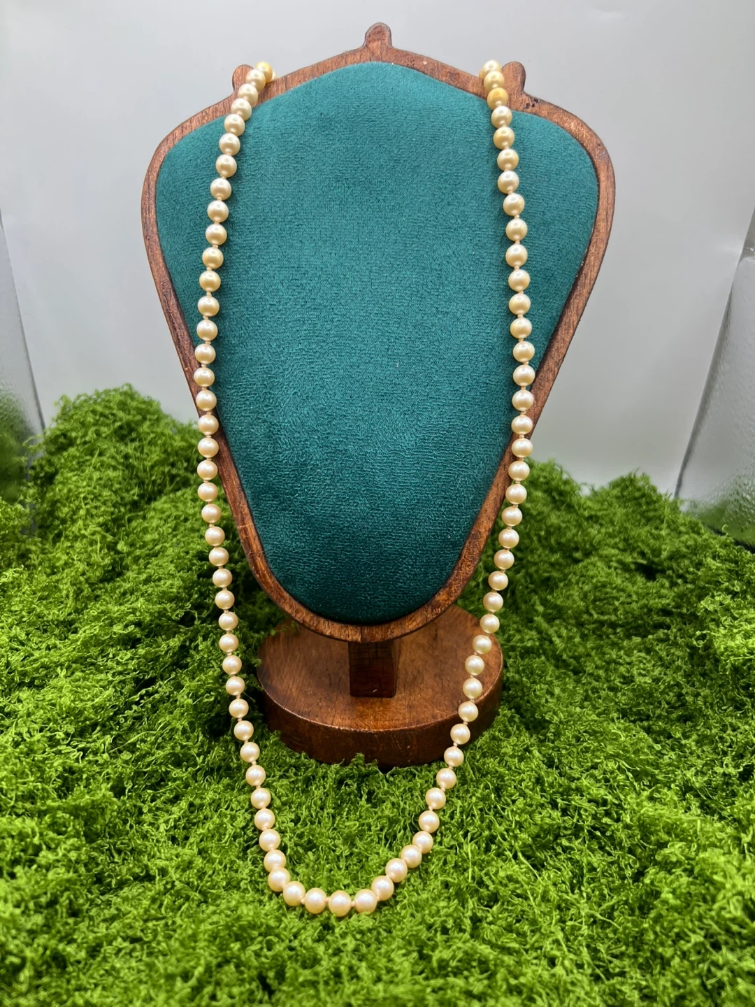 A lovely strand of vintage pearls! This necklace is a classic accessory that can add a touch of elegance to any outfit. It's in great condition and ready to be worn