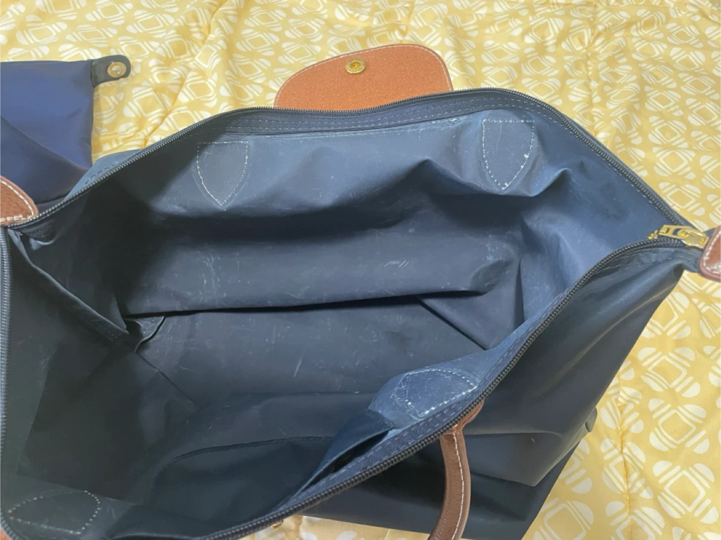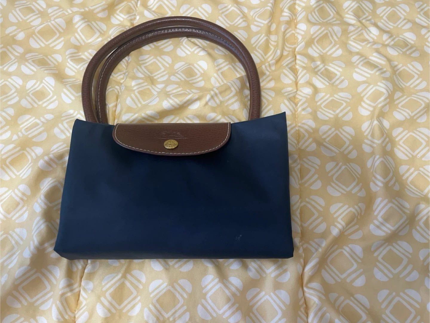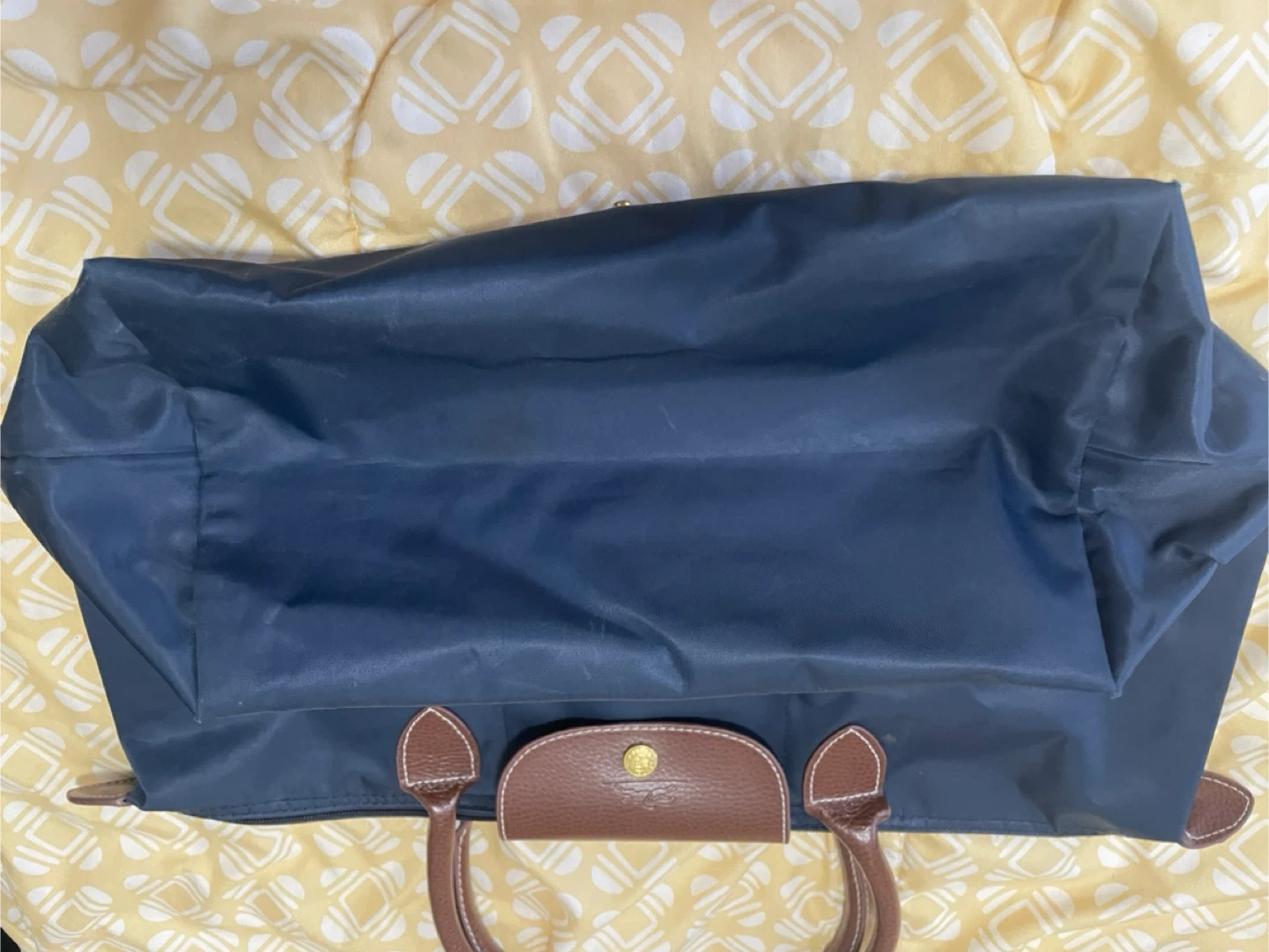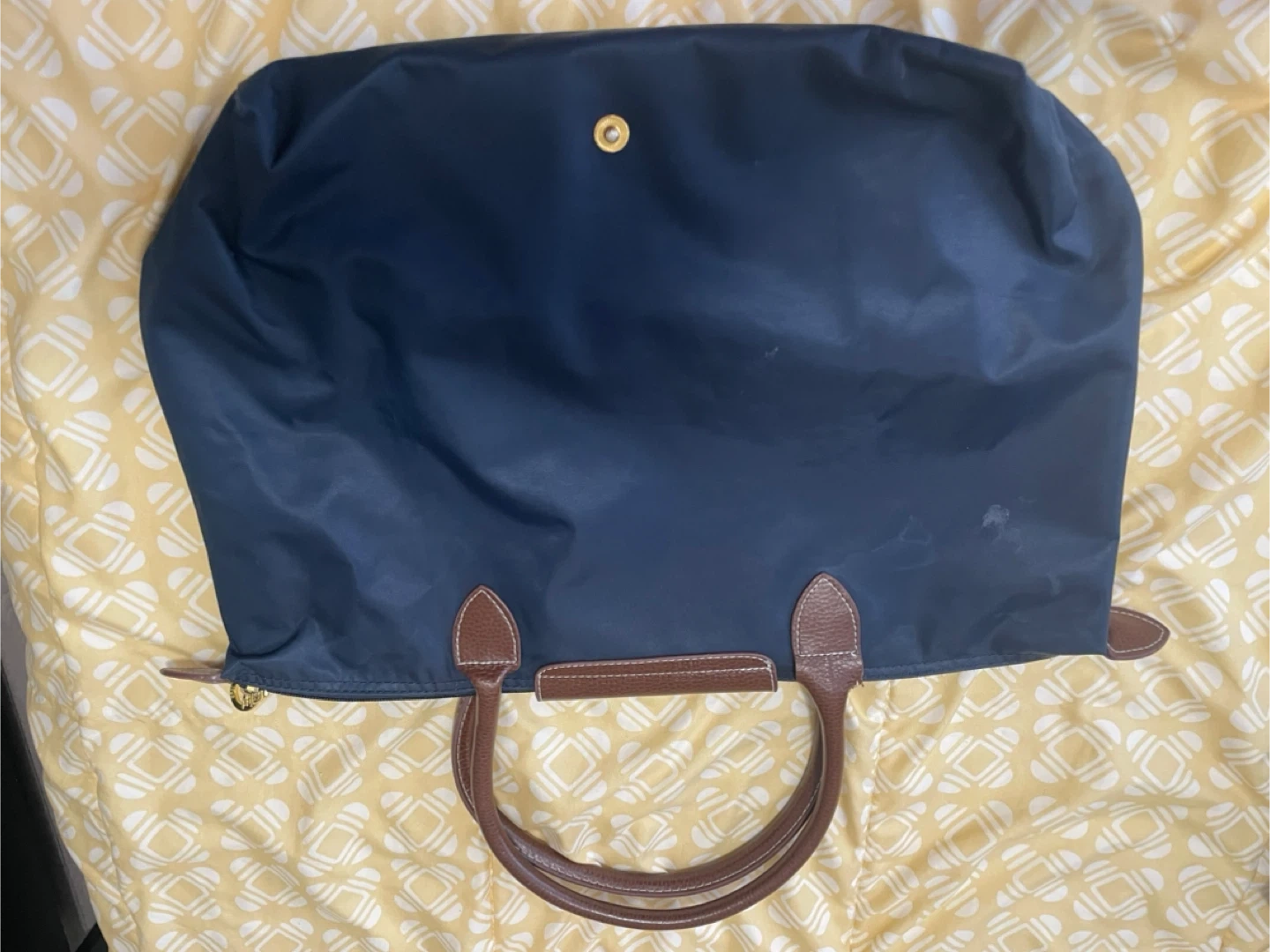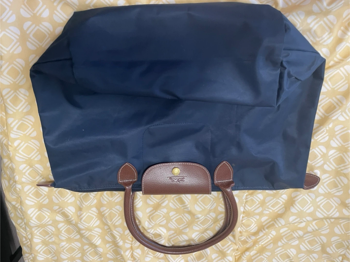 I'm selling a Longchamp tote bag in navy blue. It's in good condition and ready for a new home! It's a great everyday bag or for travel