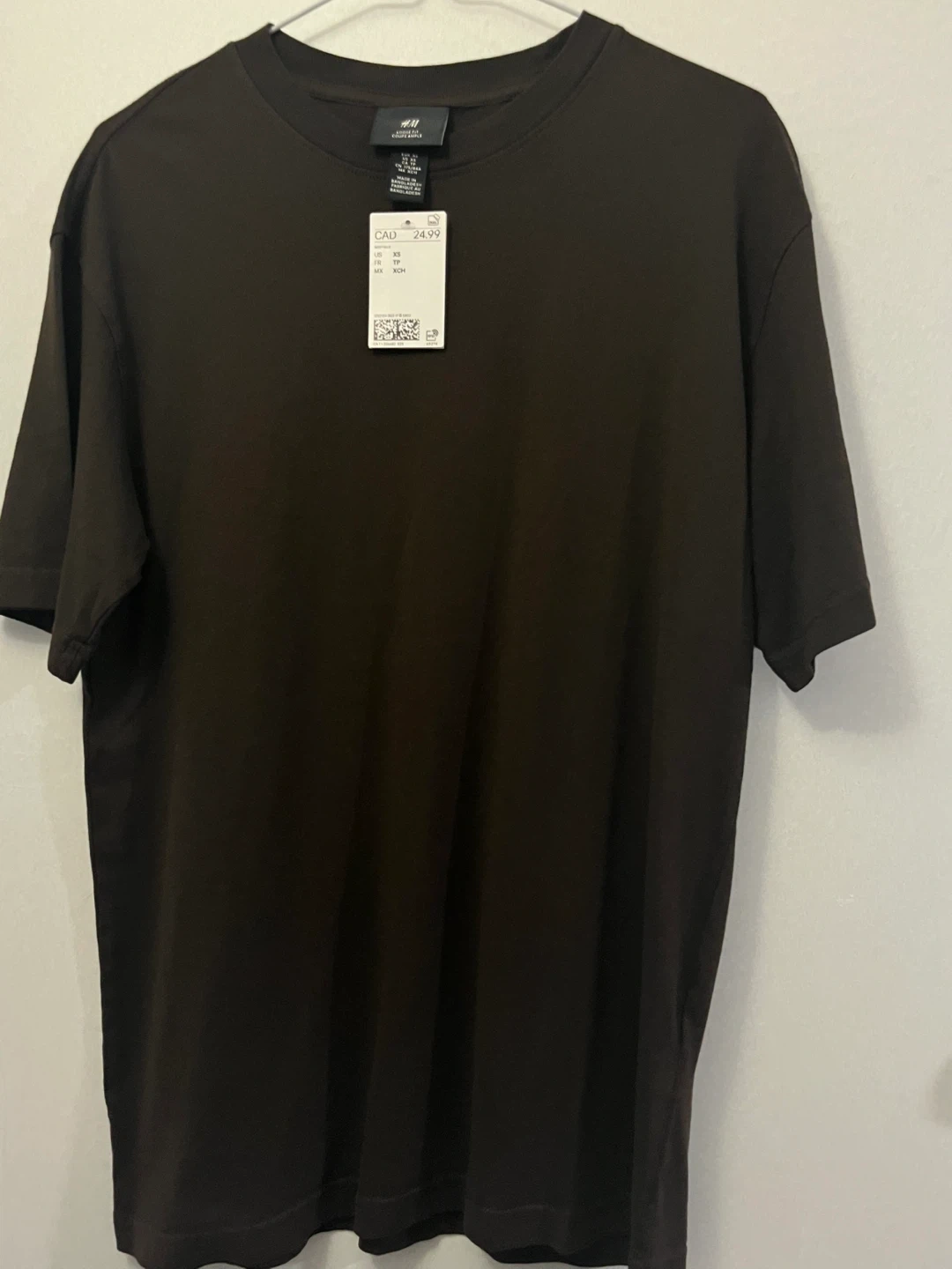 H&M Loose Fit T-Shirt • Size: XS • Color: Brown (Solid) • Material: Cotton & Polyester • Price: $15 Condition: Brand new with tags (unused) Received as a gift but the size does not fit. Features a loose fit, round neckline, short sleeves, and a regular length with a straight-cut hem. Has a washed, vintage look for a relaxed everyday style. DM if interested.