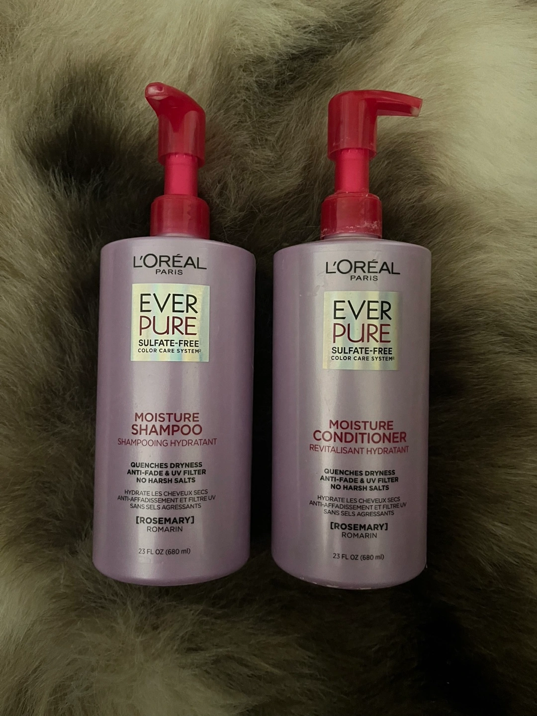 New L'Oréal EverPure sulfate-free shampoo and conditioner. Moisture shampoo and conditioner. Rosemary scent. 23 fl oz (680 mL) each bottle.