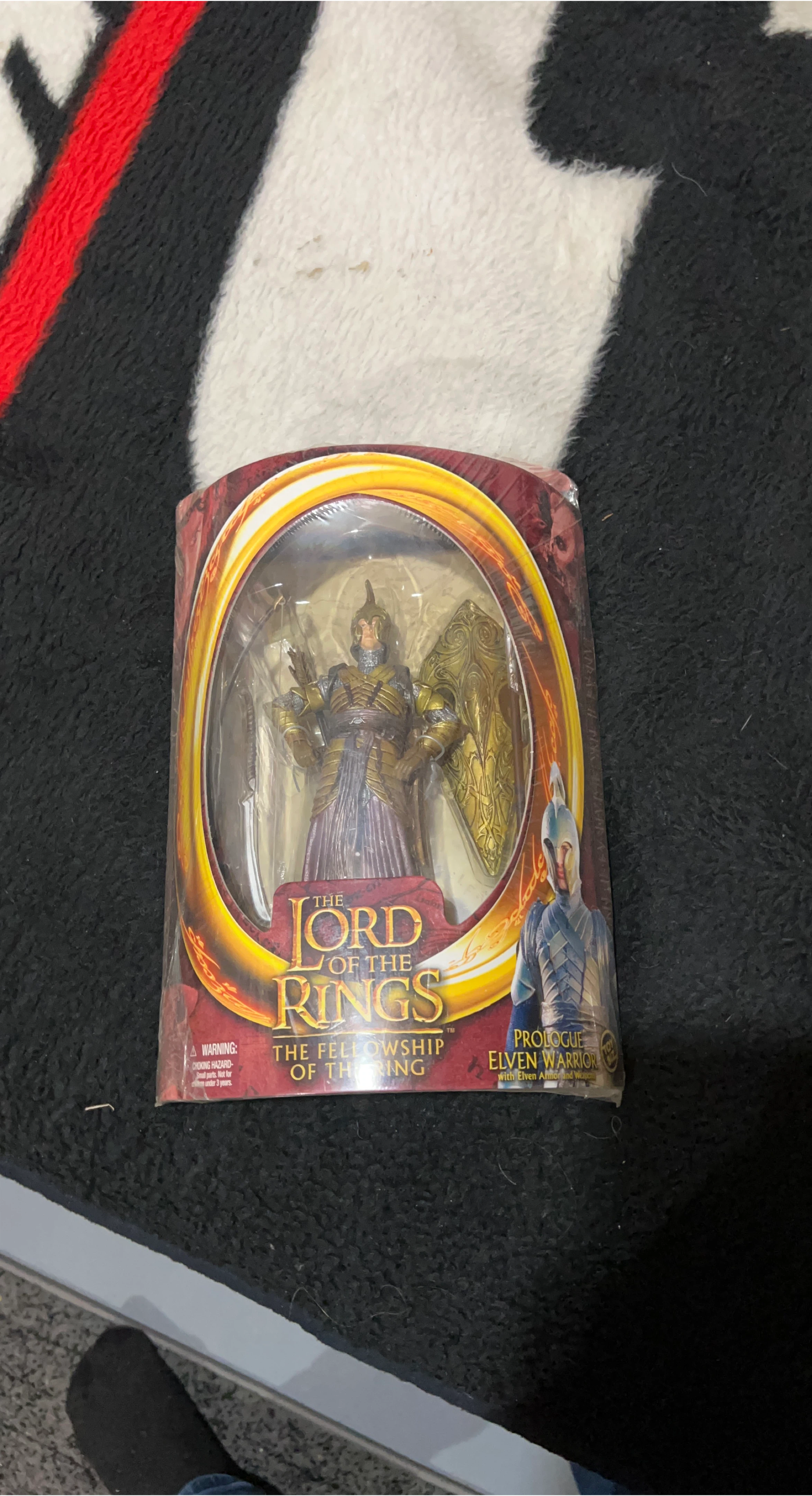 Selling a Lord of the Rings: The Fellowship of the Ring Prologue Elven Warrior action figure! It's still in its original packaging. It features a sword-slashing action and an arrow-launching action. A cool collectible for any LOTR fan