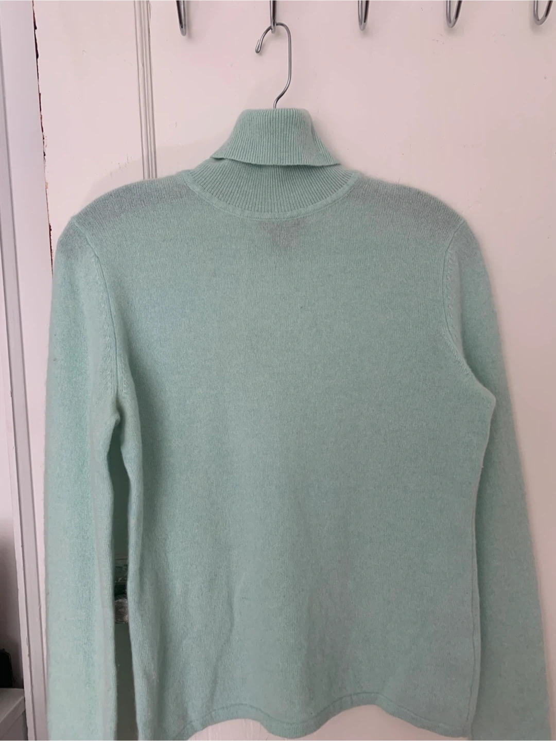Selling a lovely Lord & Taylor cashmere turtleneck in a soft, light green colour! It's made of 100% cashmere and is marked as size M/M. Perfect for staying cozy and stylish!