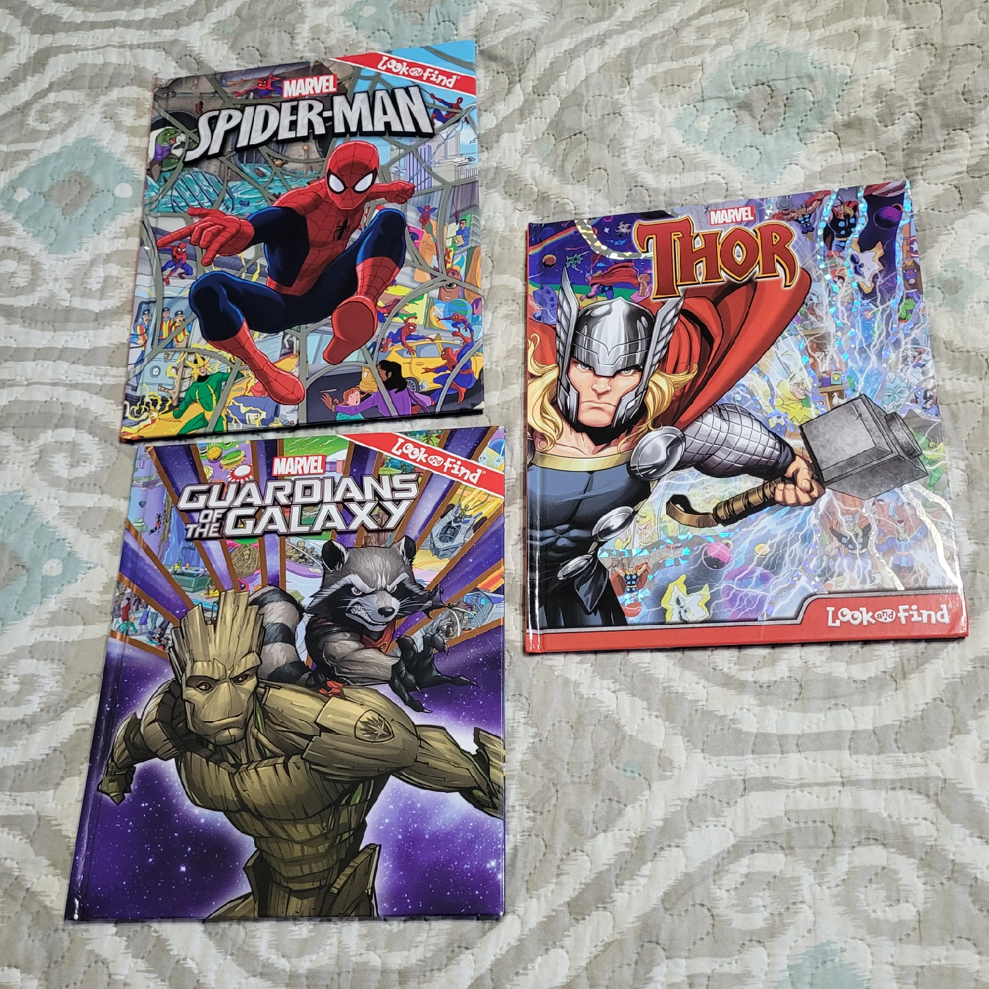 Lot of 3 Marvel "Look and Find " Hardcover Books Selling all 3 together Excellent Used Condition please see all pictures Please See all my Other Listings, Bundle & Save for a Better Deal! Located in Bradford, May be able to Meet, Shipping Offered at Buyers Expense, Please contact me for more Info & to make arrangements, sorry no holds without an ET, Thank you so much for Looking!