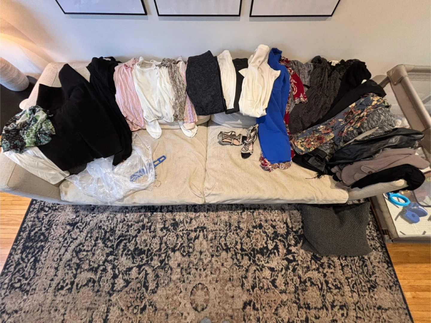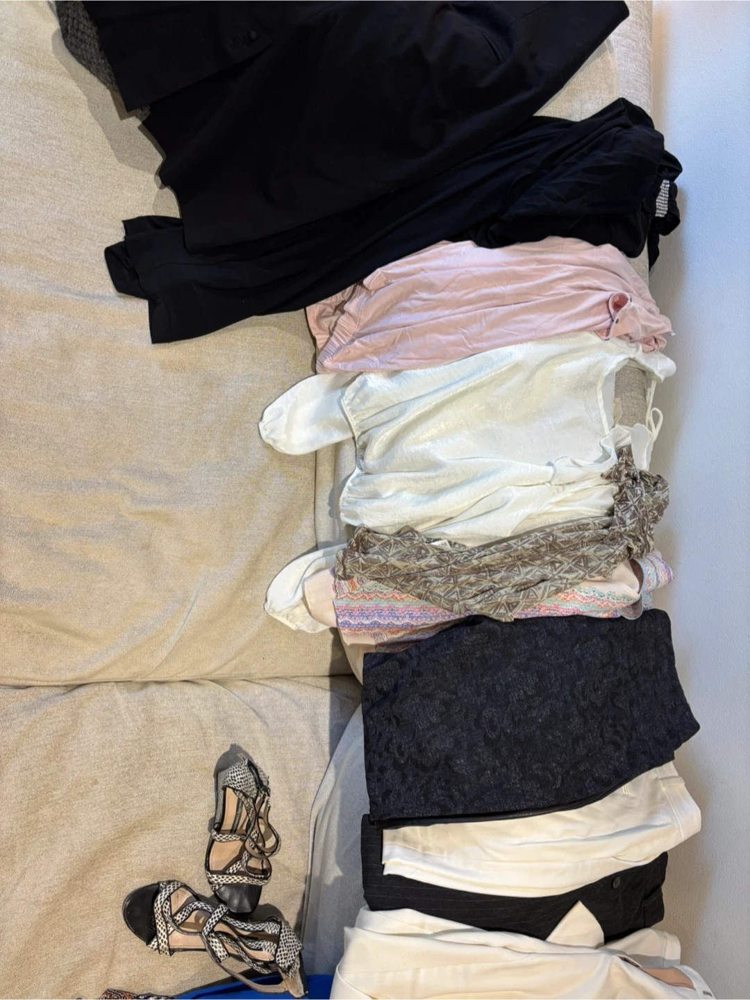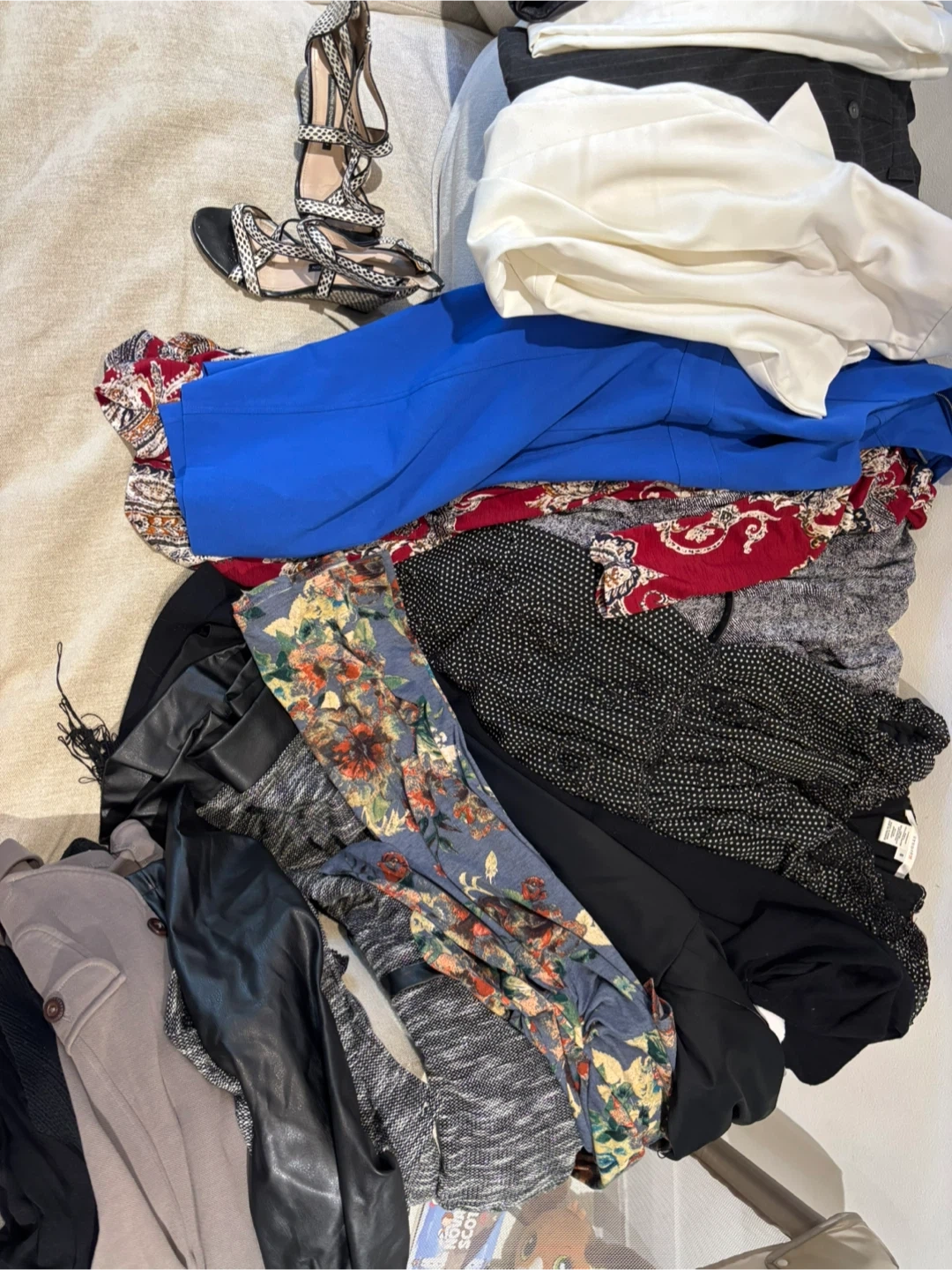 Size 6 , small or shoe size 7 Random lot of clothes. Work pants, dresses, tops, jackets/cardigans one pair of shoes.