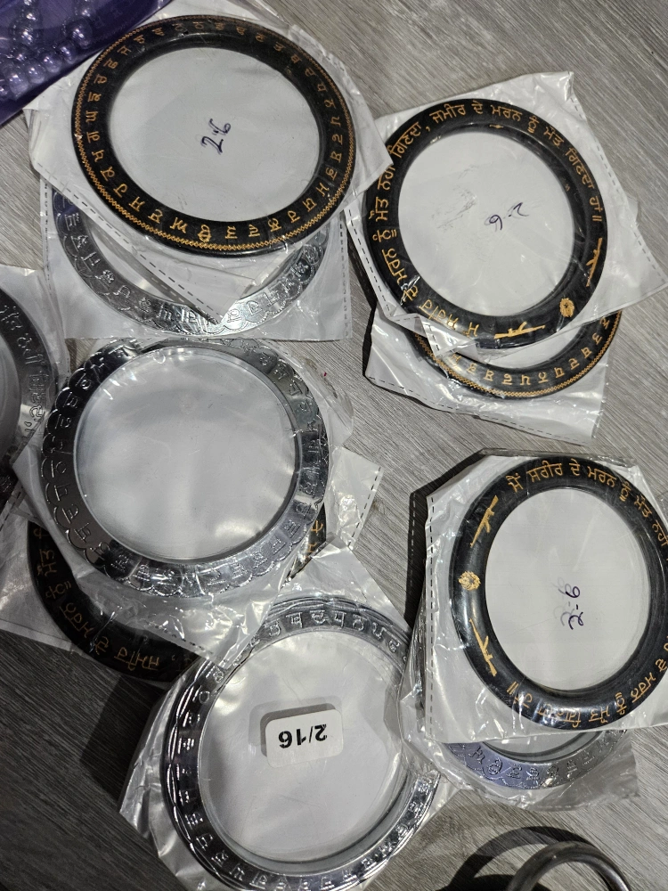 Collection of metal bangles, some plain and some beaded. Also includes several watch bezels, various styles and colours. serbloh