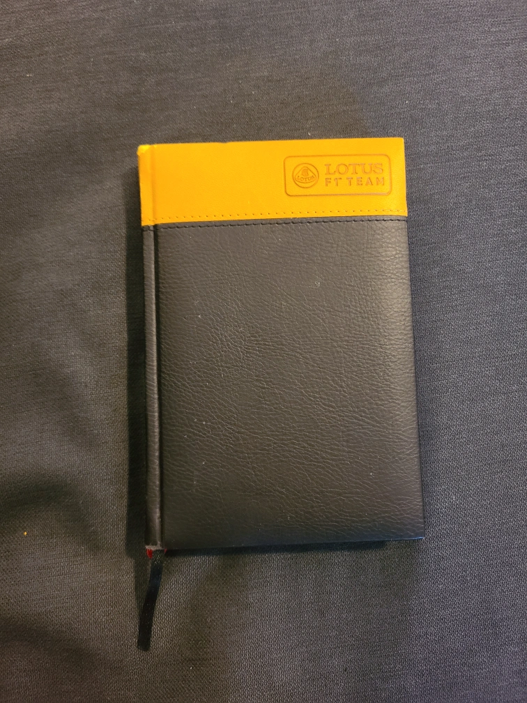 Selling a Lotus F1 Team notebook. It's in great shape and ready for your notes or sketches. The notebook features a black cover with a yellow accent and the Lotus F1 Team logo. Perfect for any Formula 1 fan! From a pet-free, smoke-free home Porch pickup near Bathurst station