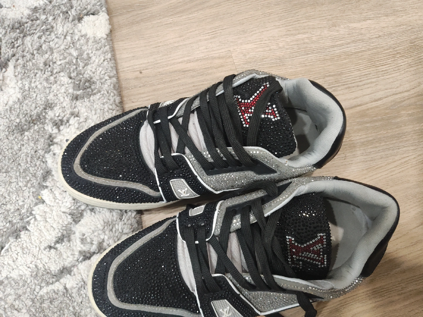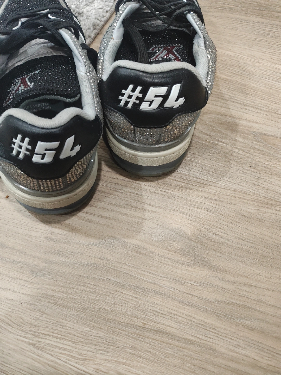 Selling a pair of Louis Vuitton sneakers with the #54 design. They are black and silver with crystal embellishments. Made in Italy.