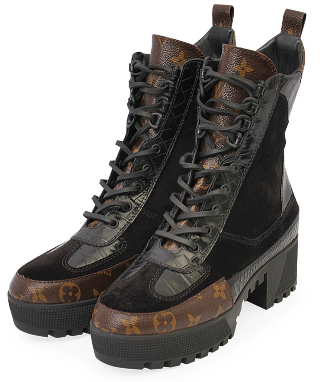 These stylish Louis Vuitton ankle boots feature a sleek black leather design with the iconic LV monogram detailing. Perfect for adding a touch of luxury to any outfit!