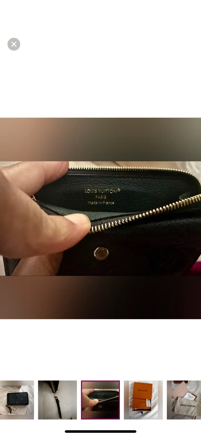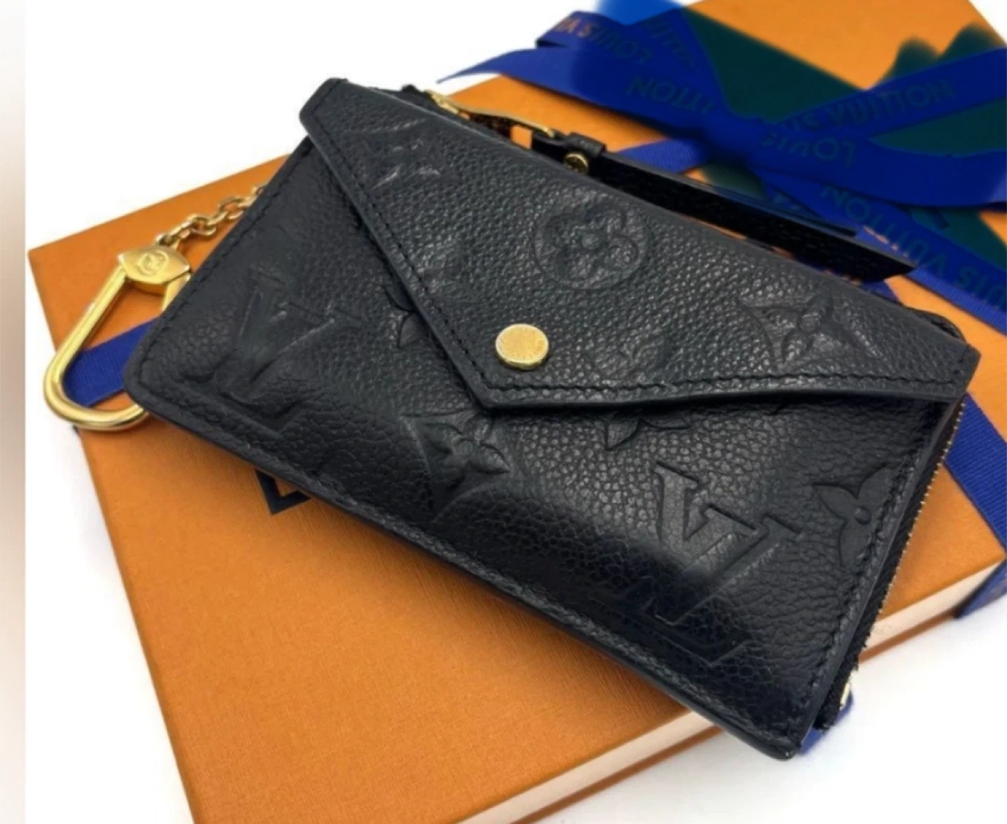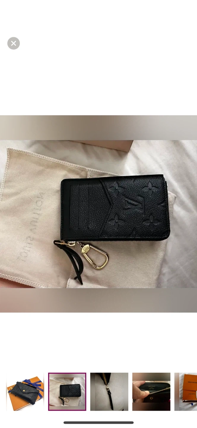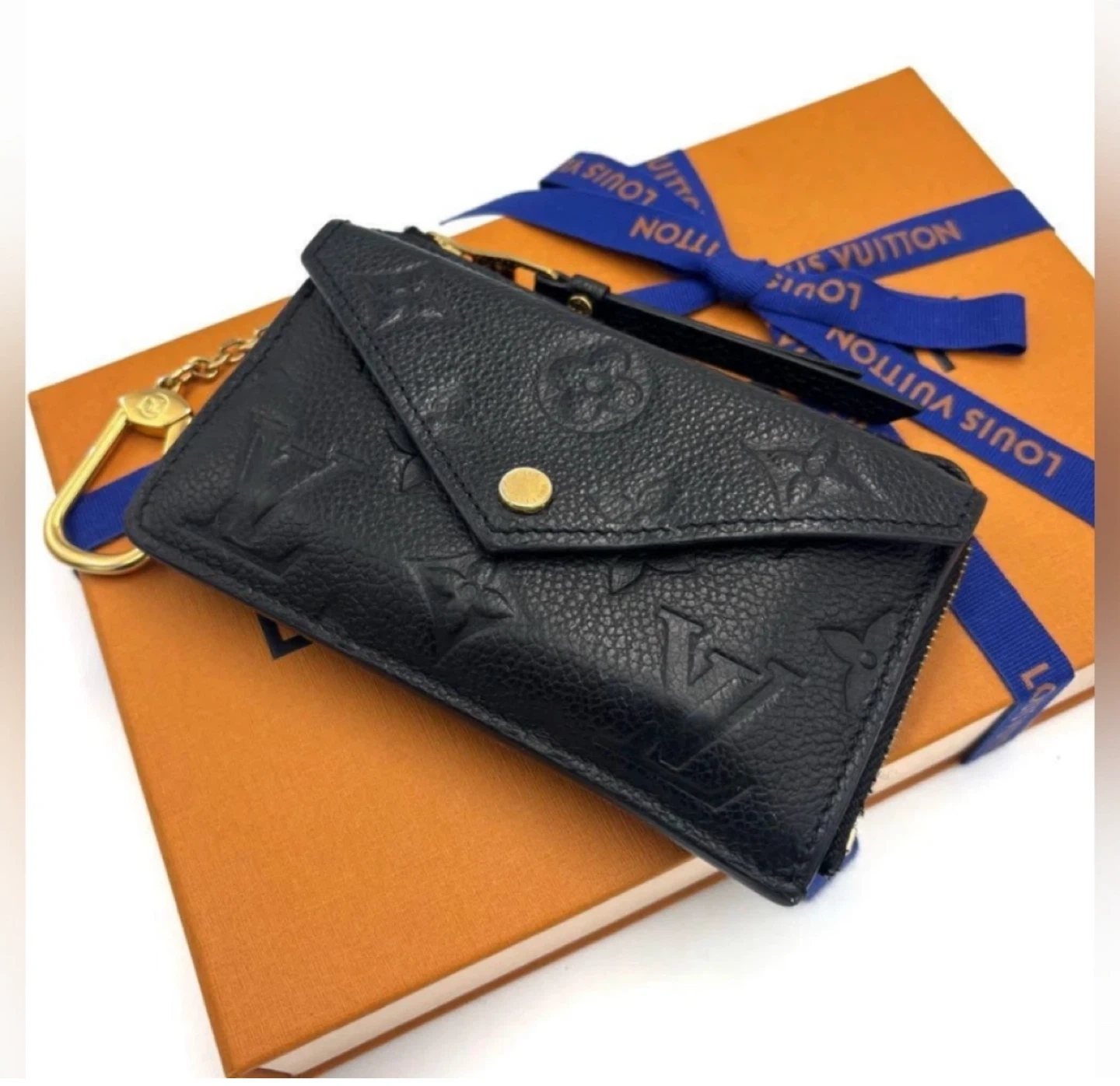 Selling a Louis Vuitton key pouch in black leather! It's in great condition and comes with its original box. Perfect for keeping your keys and cards organized in style