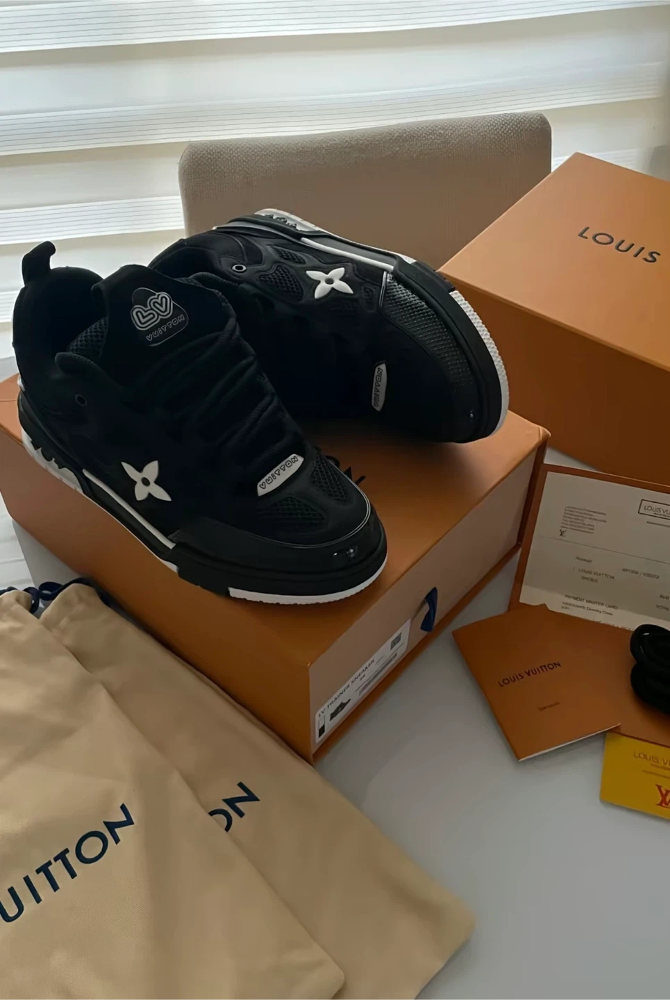 Selling a pair of Louis Vuitton sneakers in black, white, green, blue and lots of other colors. Comes with the original box and dust bags. The shoes are in brand new condition, never used and ready for a new home!