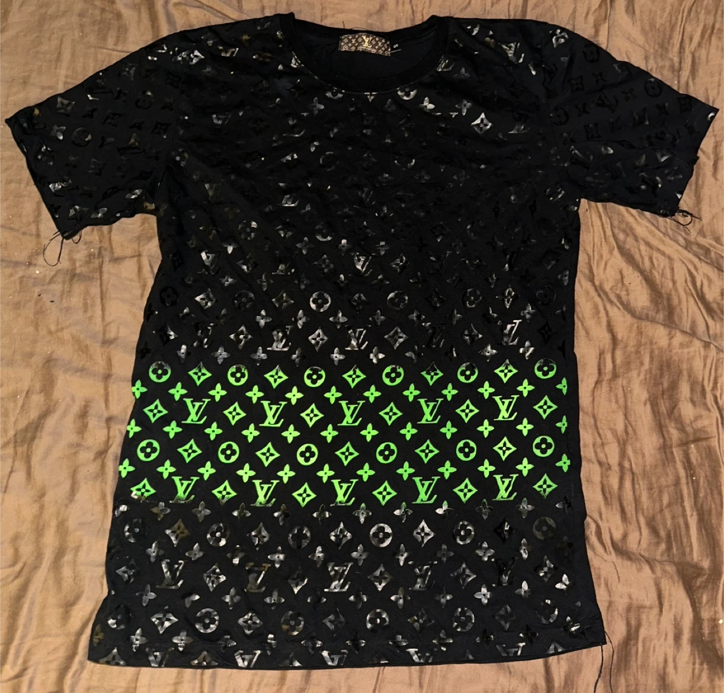 Selling a stylish Louis Vuitton black t-shirt with a unique pattern. It's in great condition and ready for a new home!