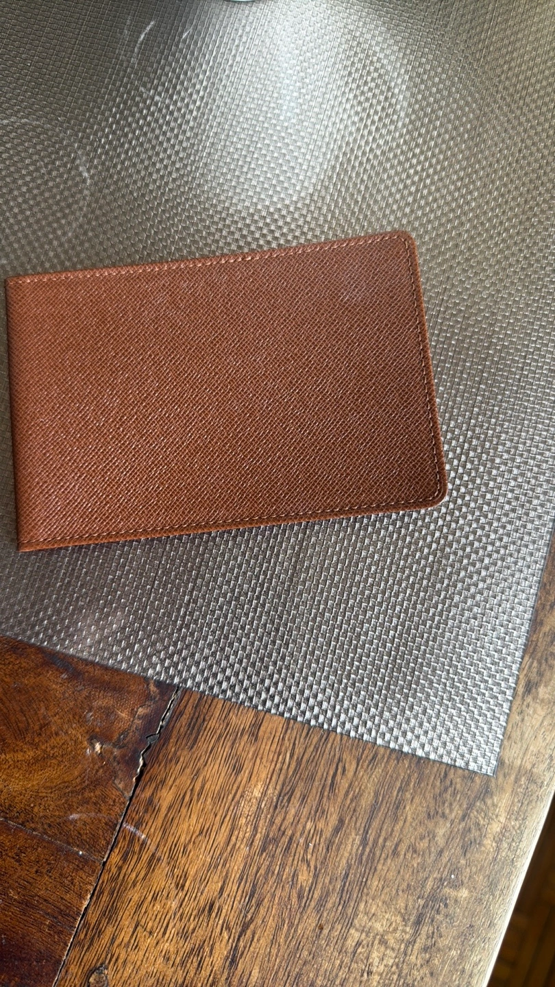 Brown leather card holder. Two interior slots. Compact design. Vintage. Pick Up Only. Cash Only - $90