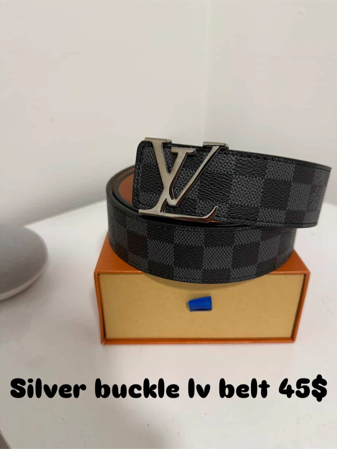 Selling a Louis Vuitton belt with a Damier Graphite pattern and silver buckle. It comes with the original box. A stylish accessory to complete your outfit!