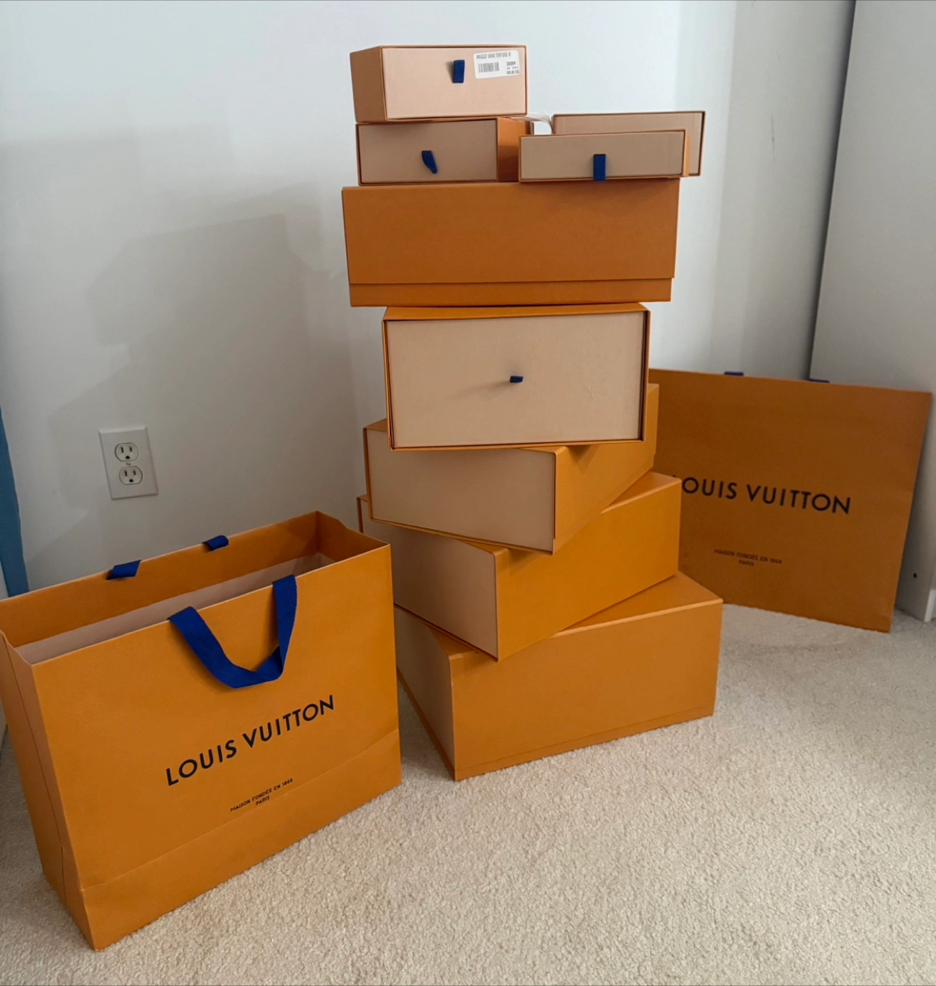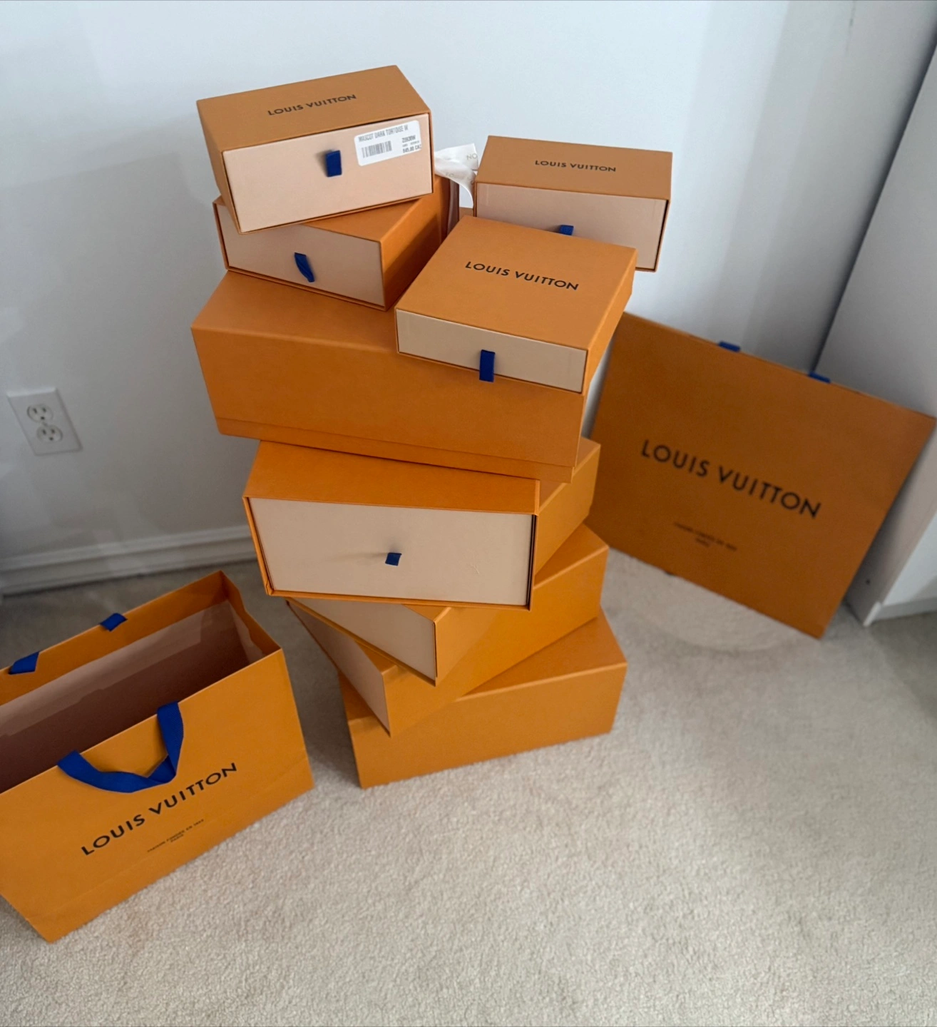 Selling a collection of empty Louis Vuitton boxes and bags. Perfect for storage or display. Various sizes included!