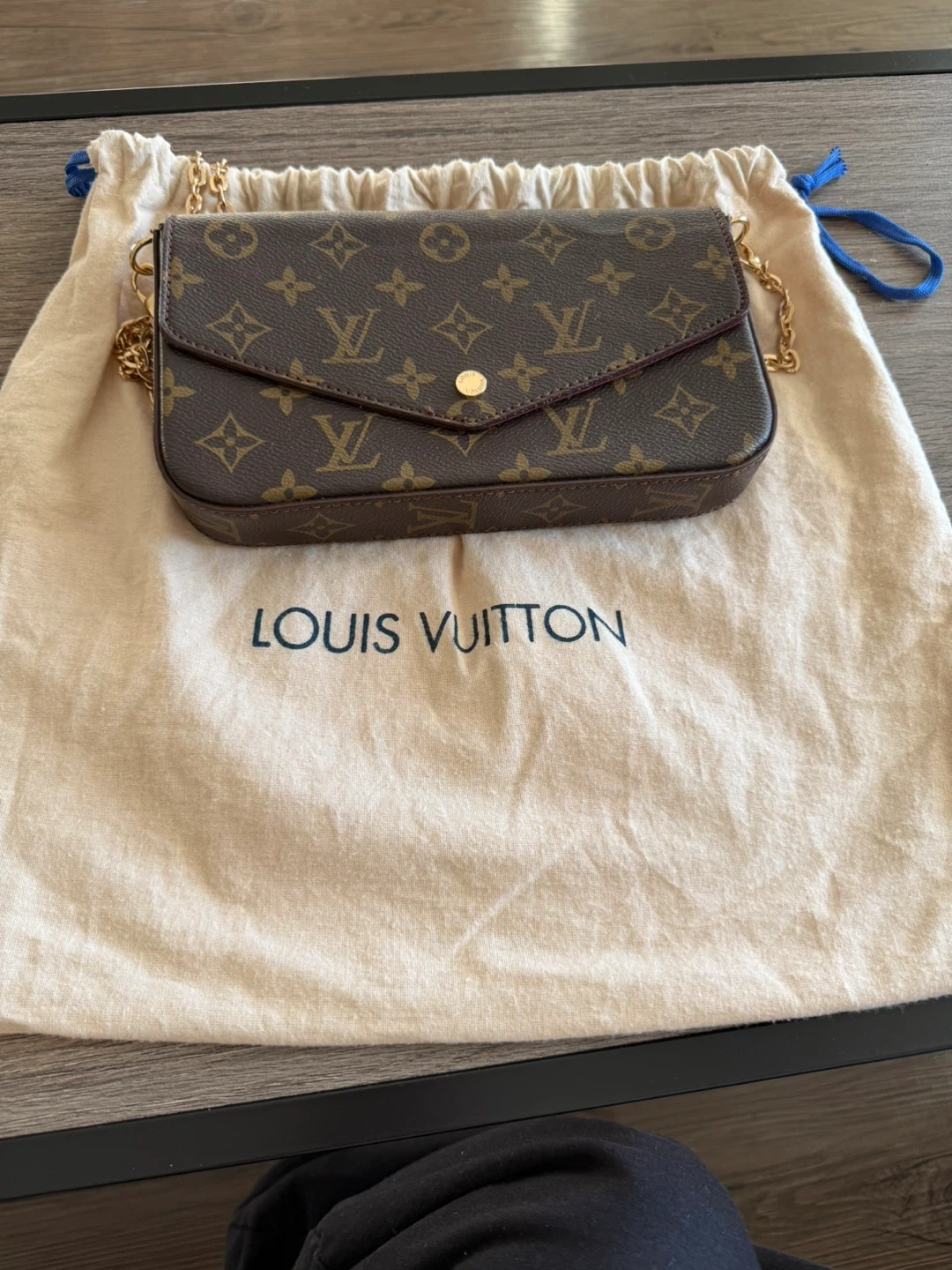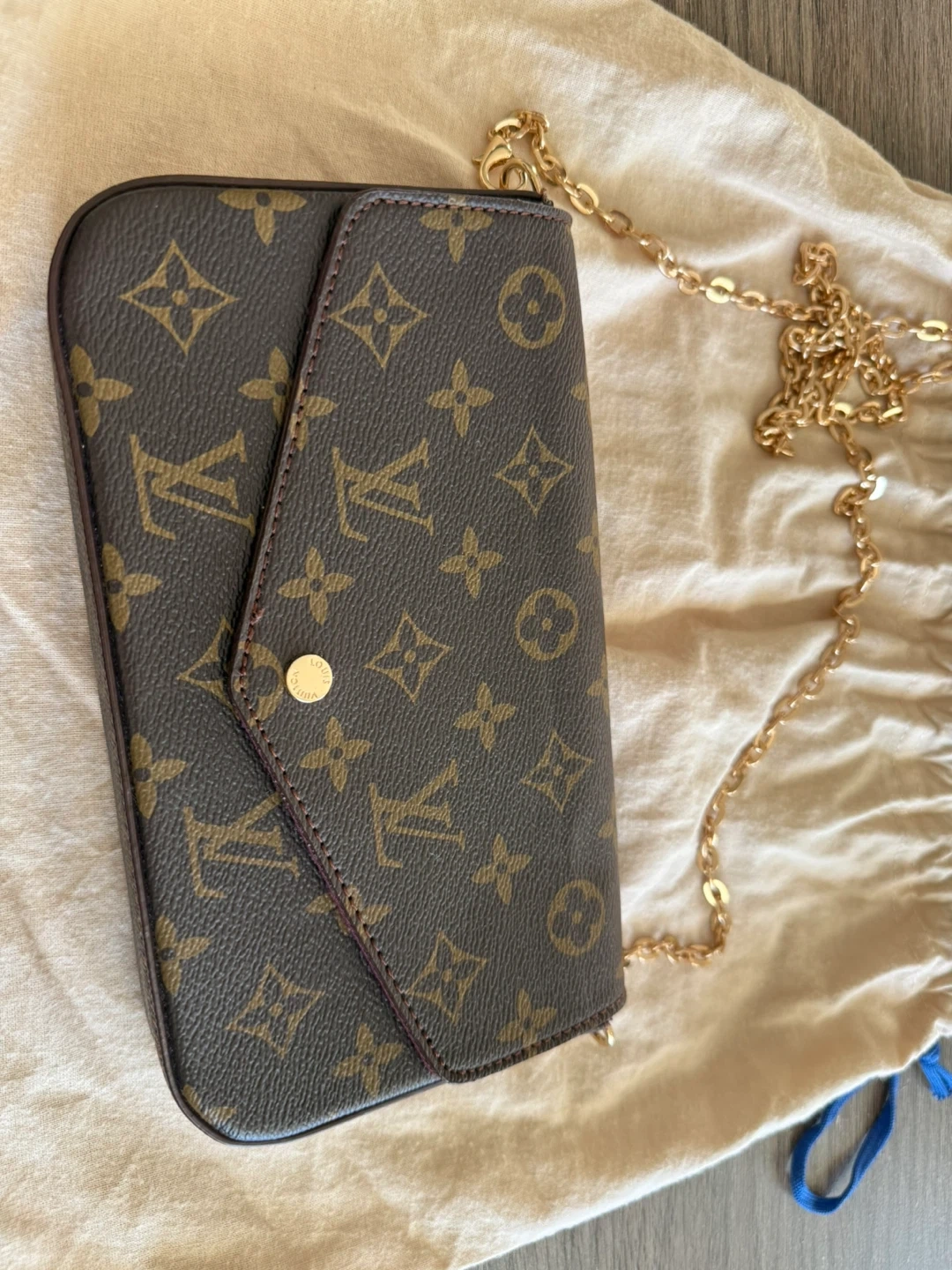 Selling a Louis Vuitton Envelope Chain Bag! It's in great condition and comes with its dust bag. This stylish bag is perfect for carrying your essentials.