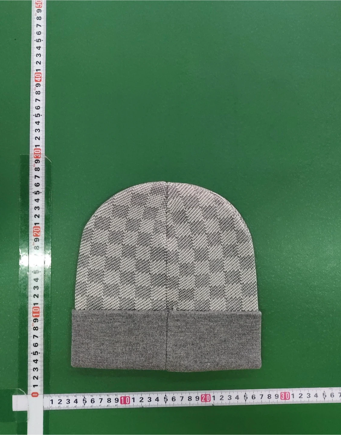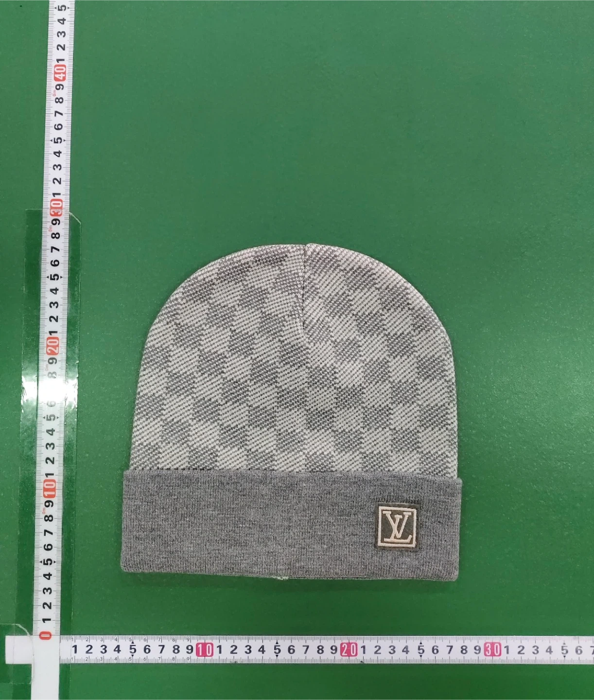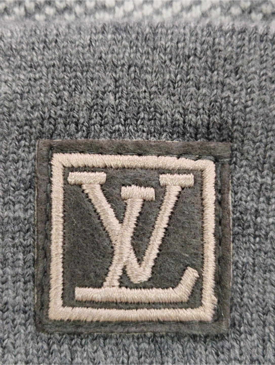 Brand new Louis Vuitton grey knit beanie! It's in perfect condition and ready to keep you warm. The beanie features a stylish grey checkered pattern and the iconic LV logo on the brim. Great for adding a touch of luxury to your winter wardrobe