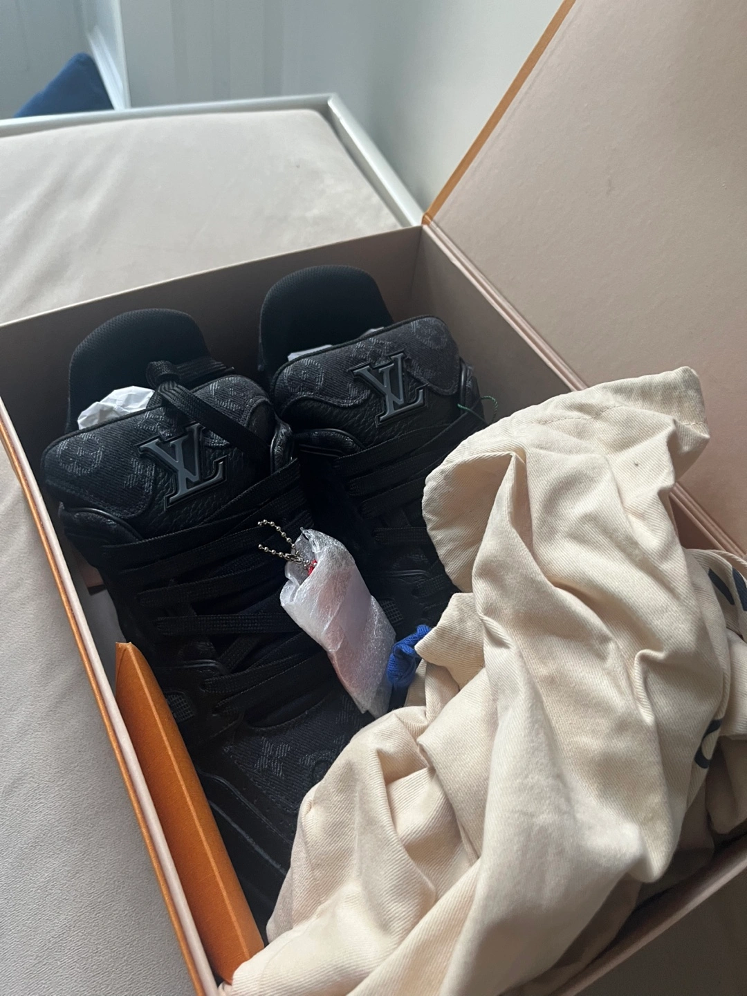 Selling a pair of LV Trainer x Nigo Black Denim, Brand New, Never worn, Men’s Size 10, comes with spare laces and cloth fabric shoe covers, PRICE IS NEGOTIABLE depending on location.