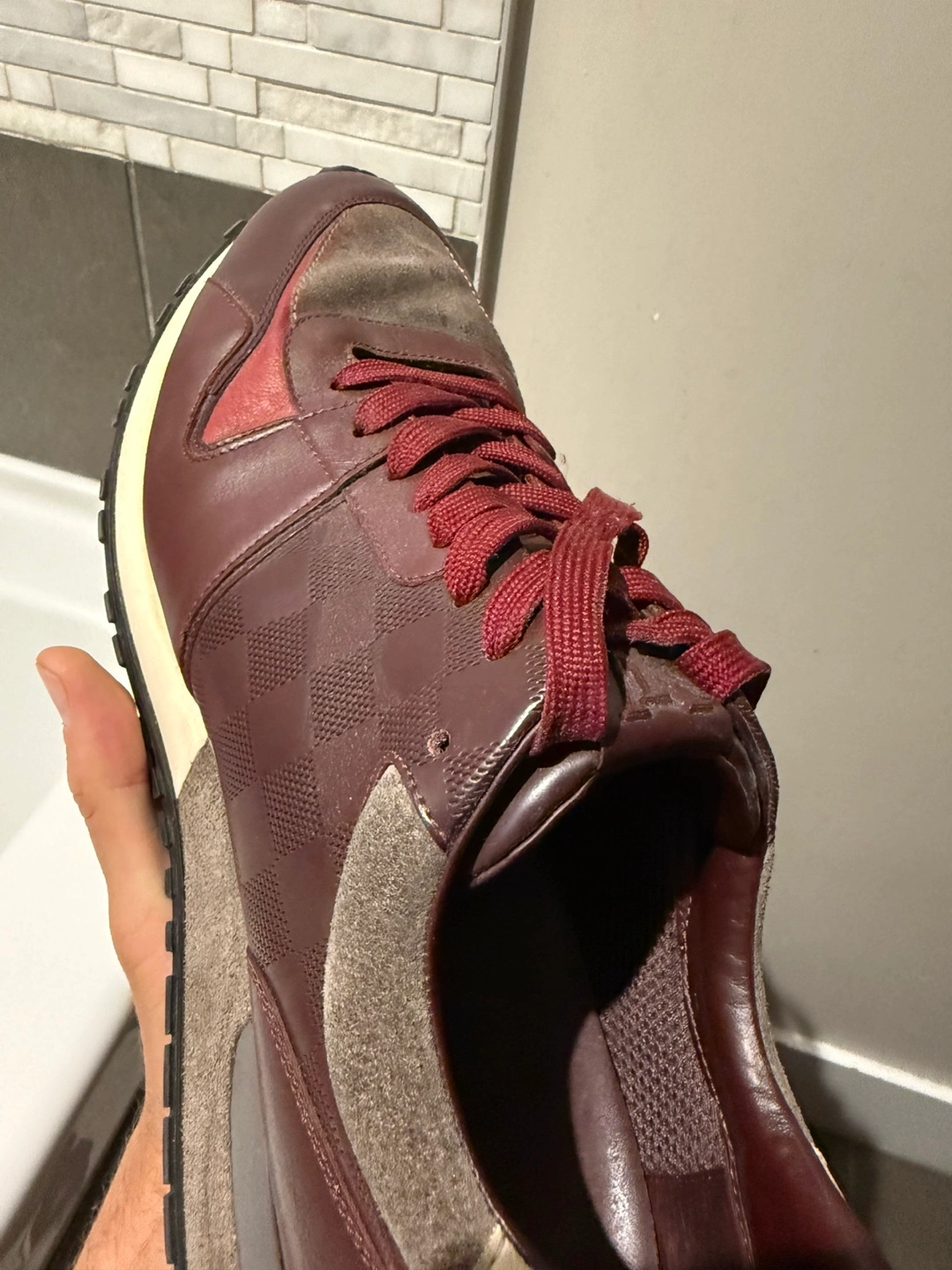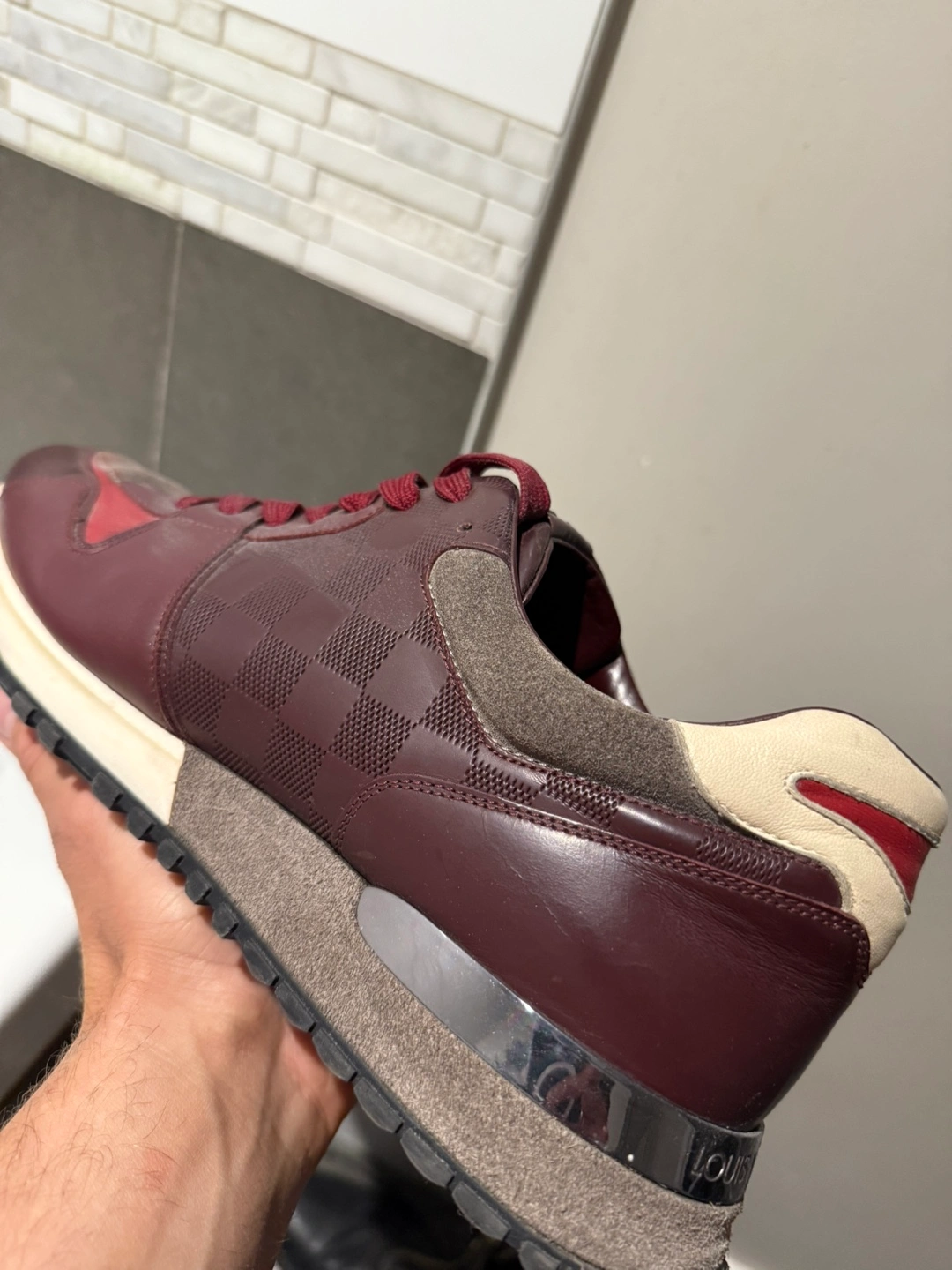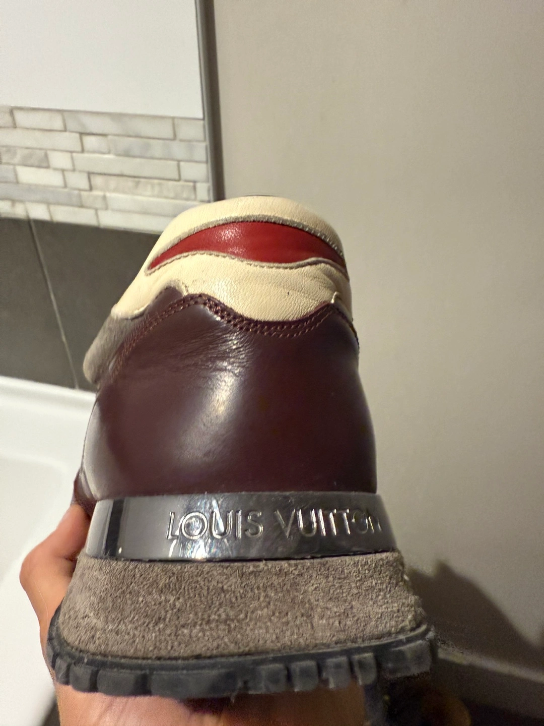 Selling a pair of Louis Vuitton Run Away leather low trainers in burgundy. They are in very good condition and are a European size 42.5. The trainers are made of leather. Pickup Vancouver evenings