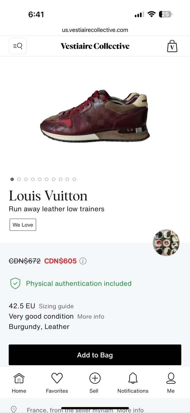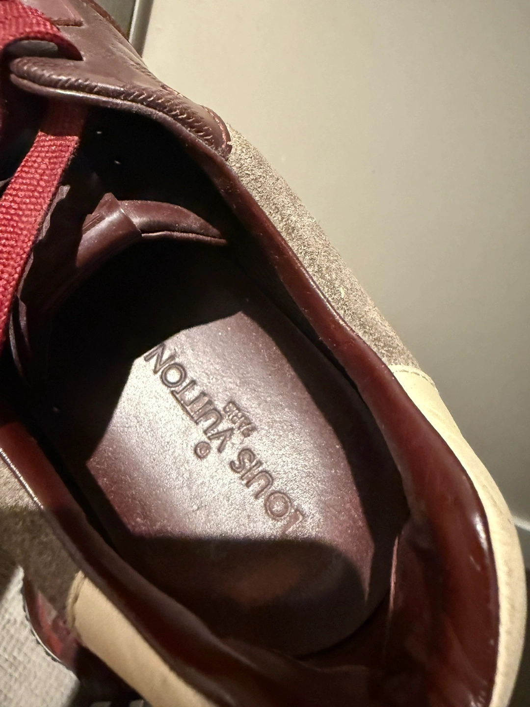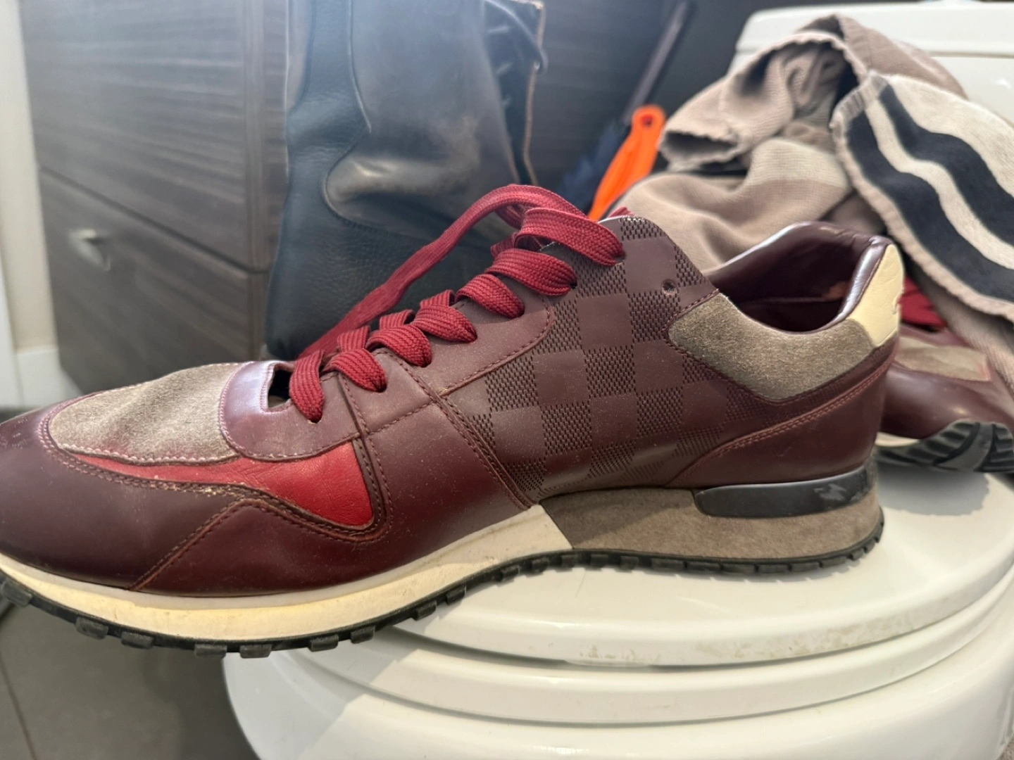 Selling a pair of Louis Vuitton Run Away leather low trainers in burgundy. They are in very good condition and are a European size 42.5. The trainers are made of leather. Pickup Vancouver evenings