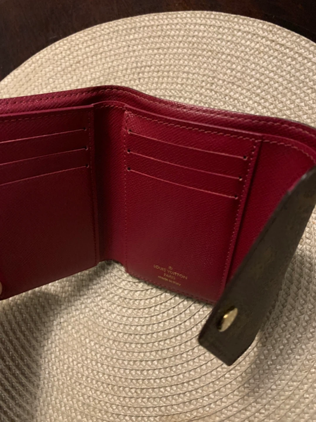 Louis Vuitton womens wallet . Great value well under retail price of 300$ to 400$. Like new condition red interior with brown exterior. Won’t last at this price for the great condition it’s in