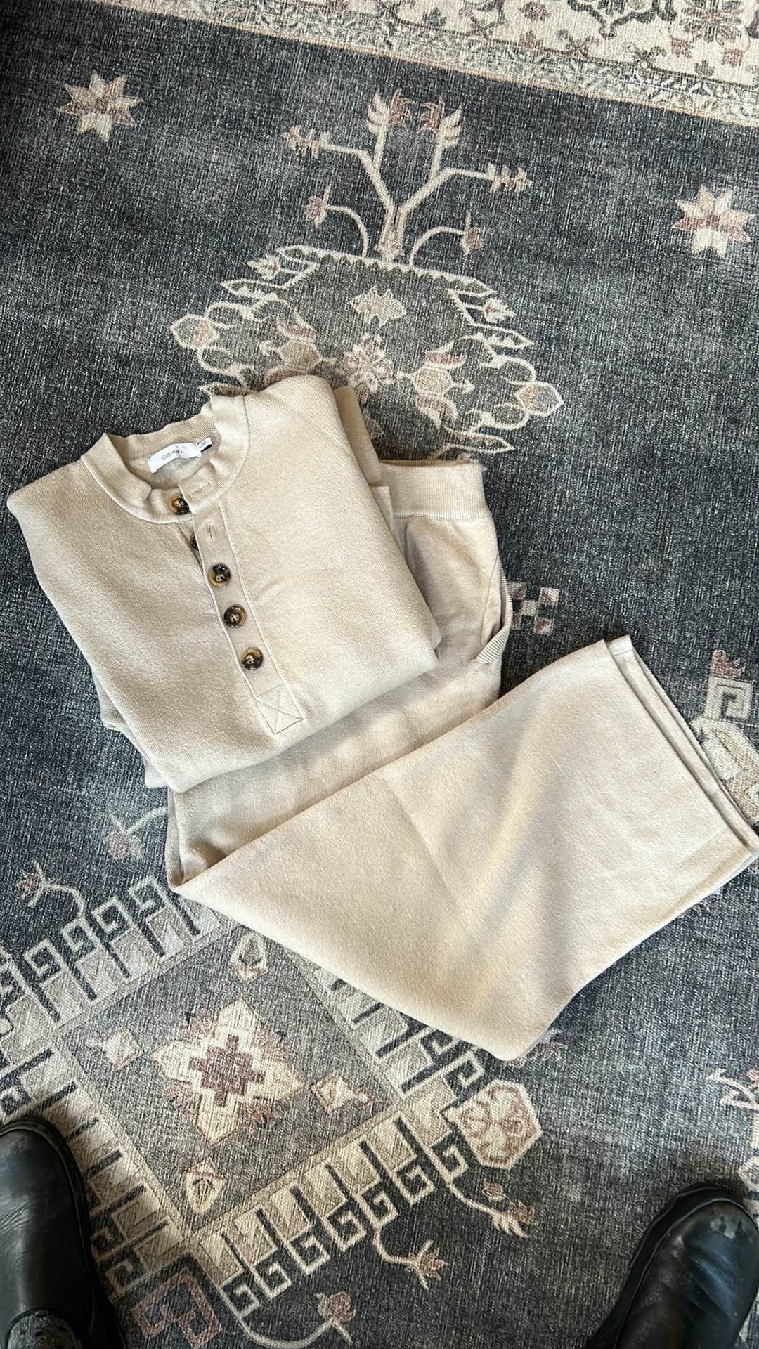 Super cozy Henley top and pant set. Pants have two side pockets. Beige color. You will live in this set!