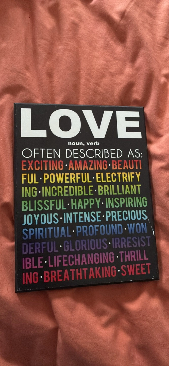 This canvas wall art features the word 'LOVE' and a list of positive adjectives. It would be a great addition to any room!