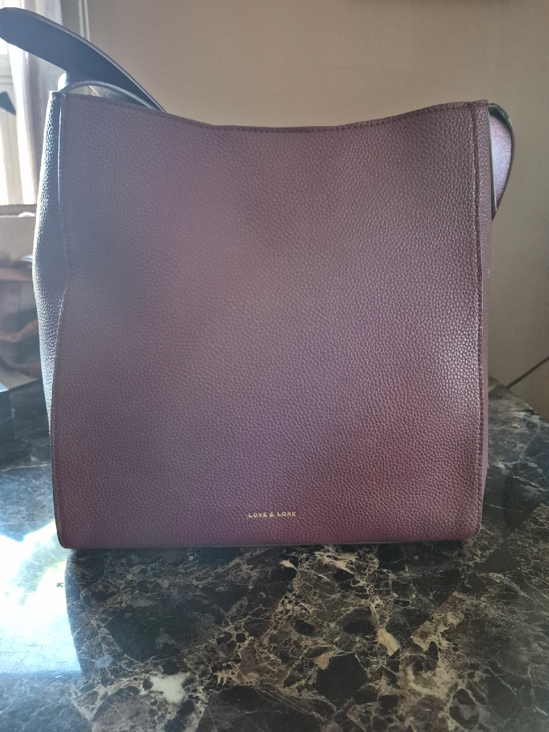 Selling a Love & Lore tote bag in a beautiful burgundy colour. It's in great condition and ready for a new home!