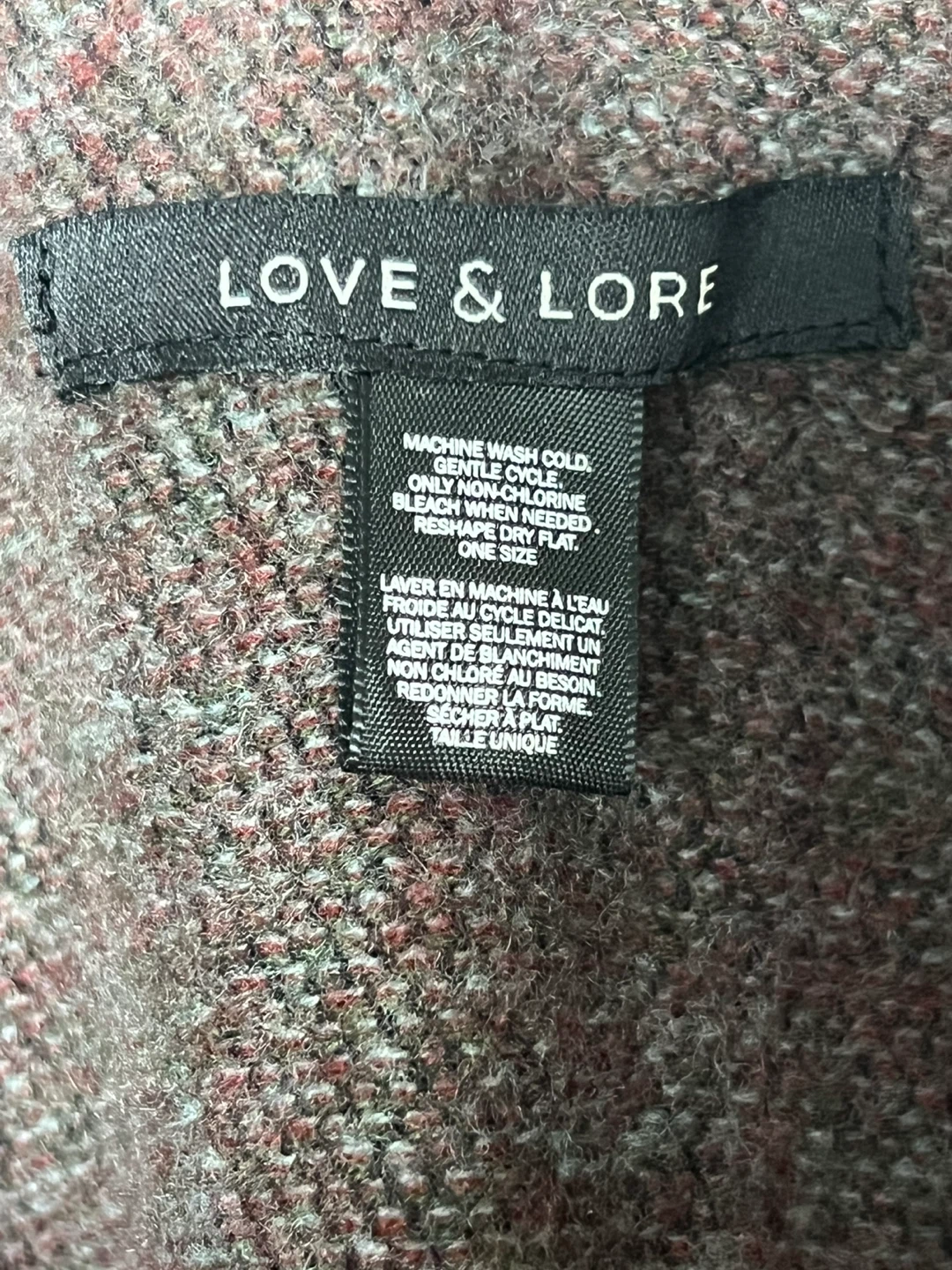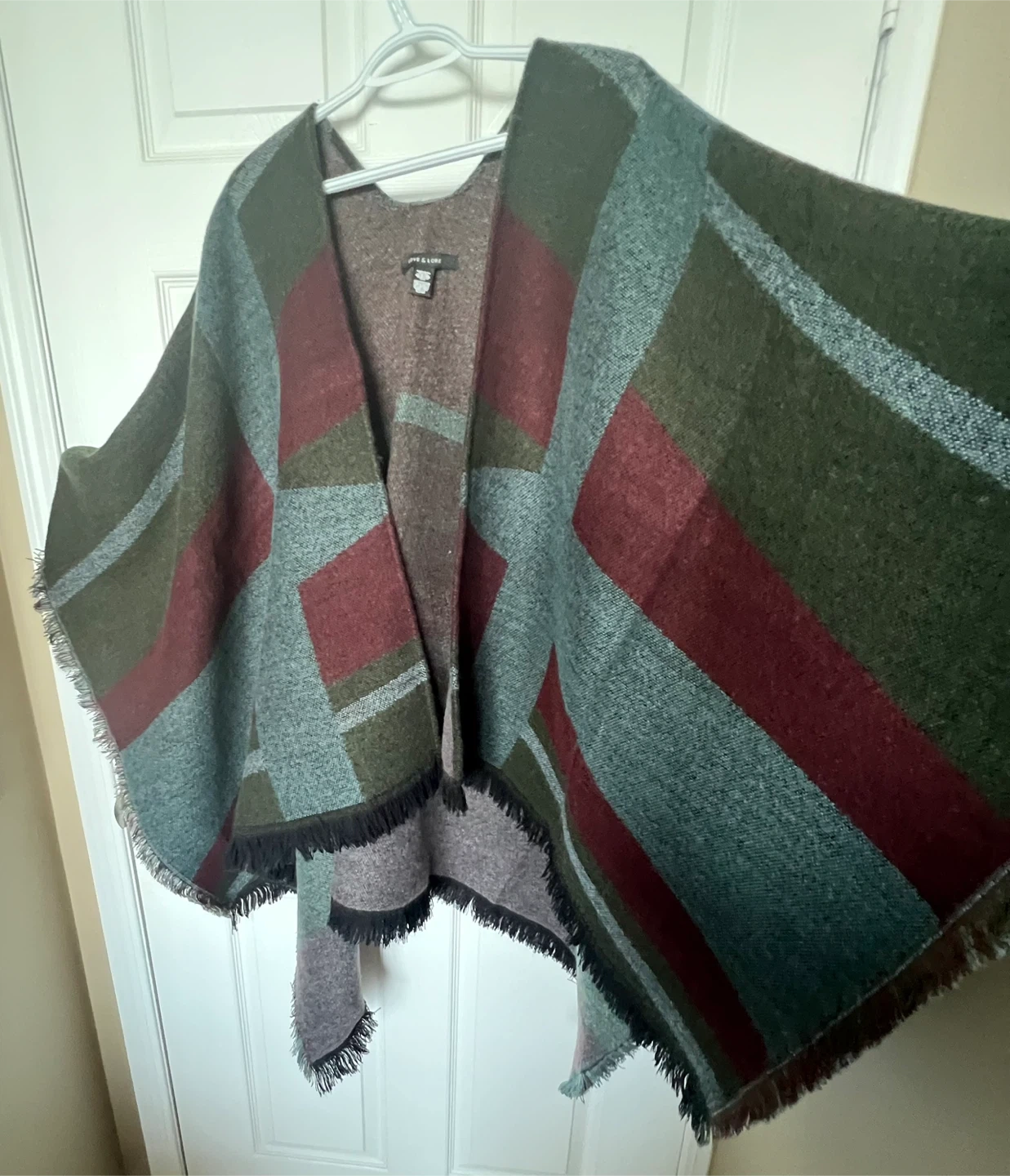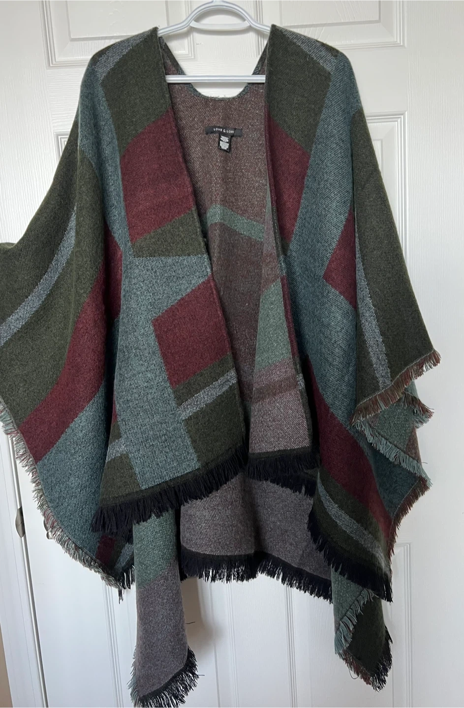 Selling a cozy Love & Lore poncho/ shawl Purchased at Chapters Indigo and never worn. It's a one-size-fits-all and features a stylish geometric pattern in shades of green, grey, and burgundy. Perfect fall look Asking $45 Pet free smoke free home. Located in south Whitby by the marina